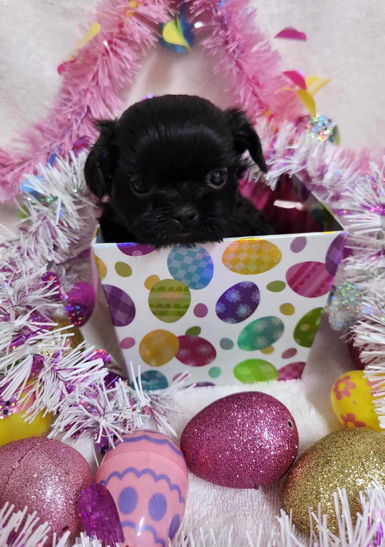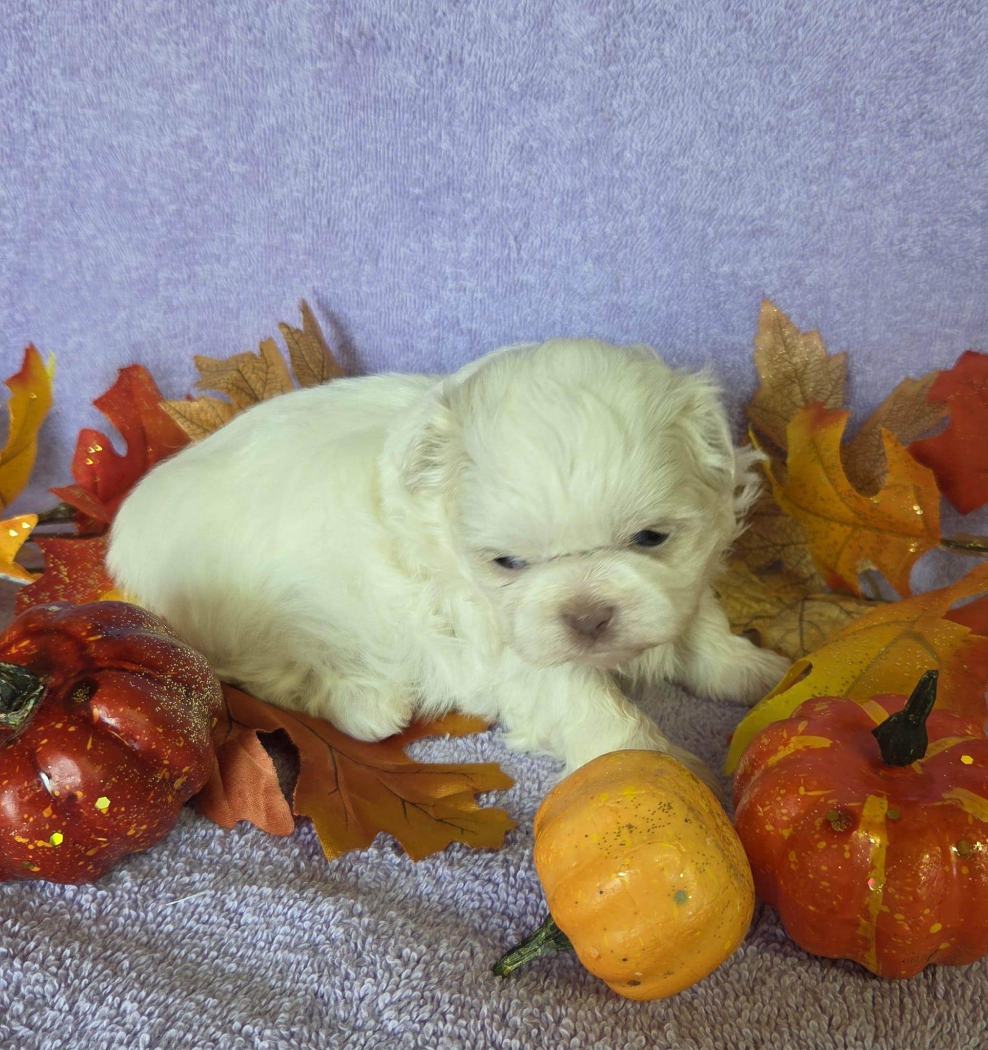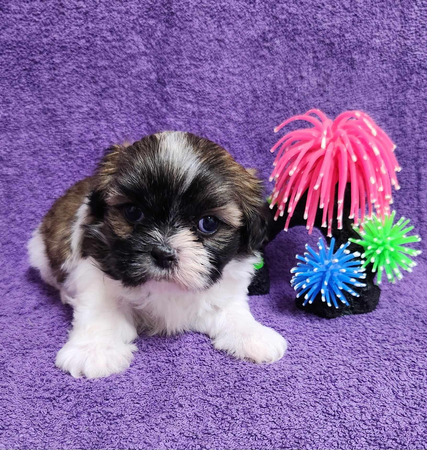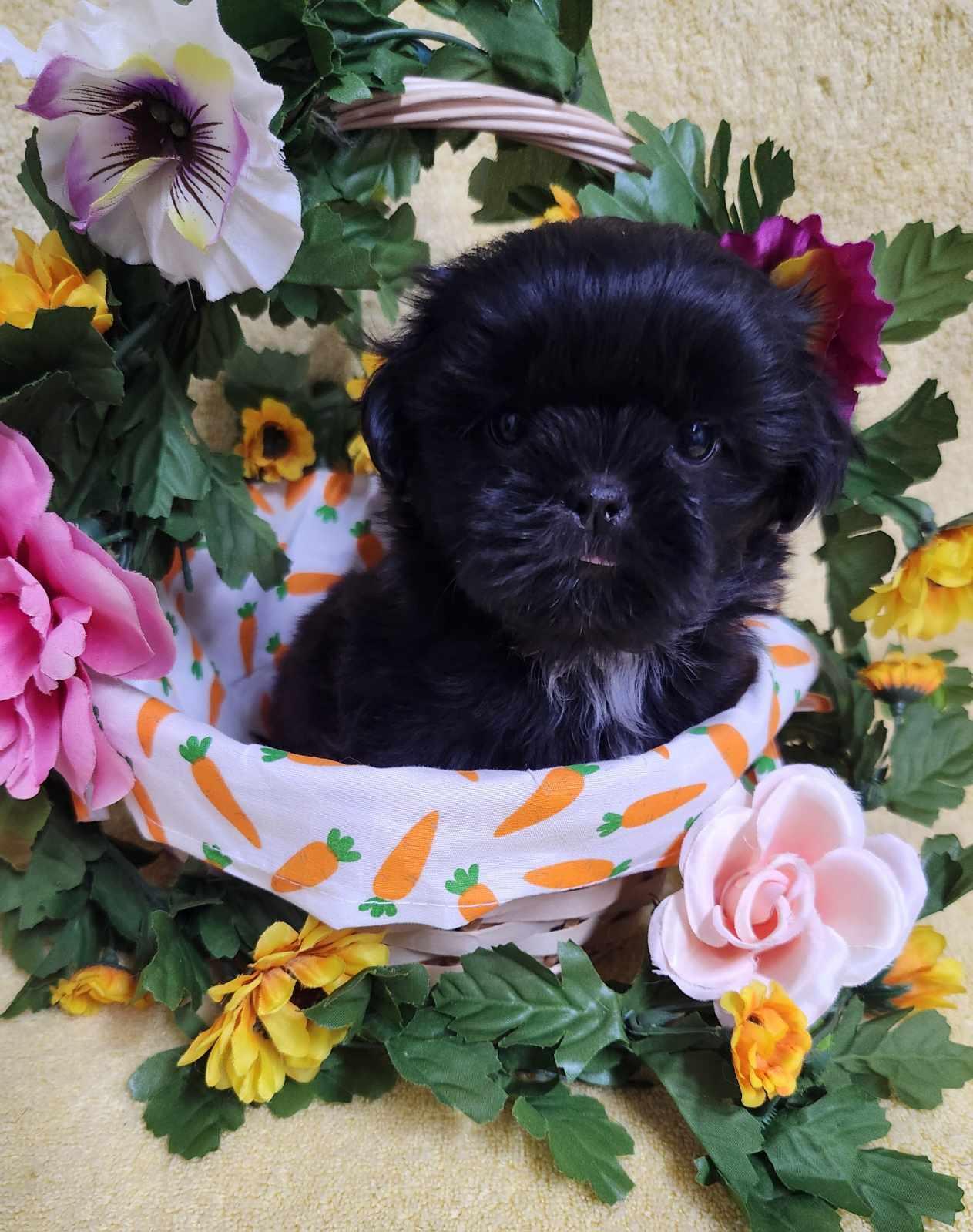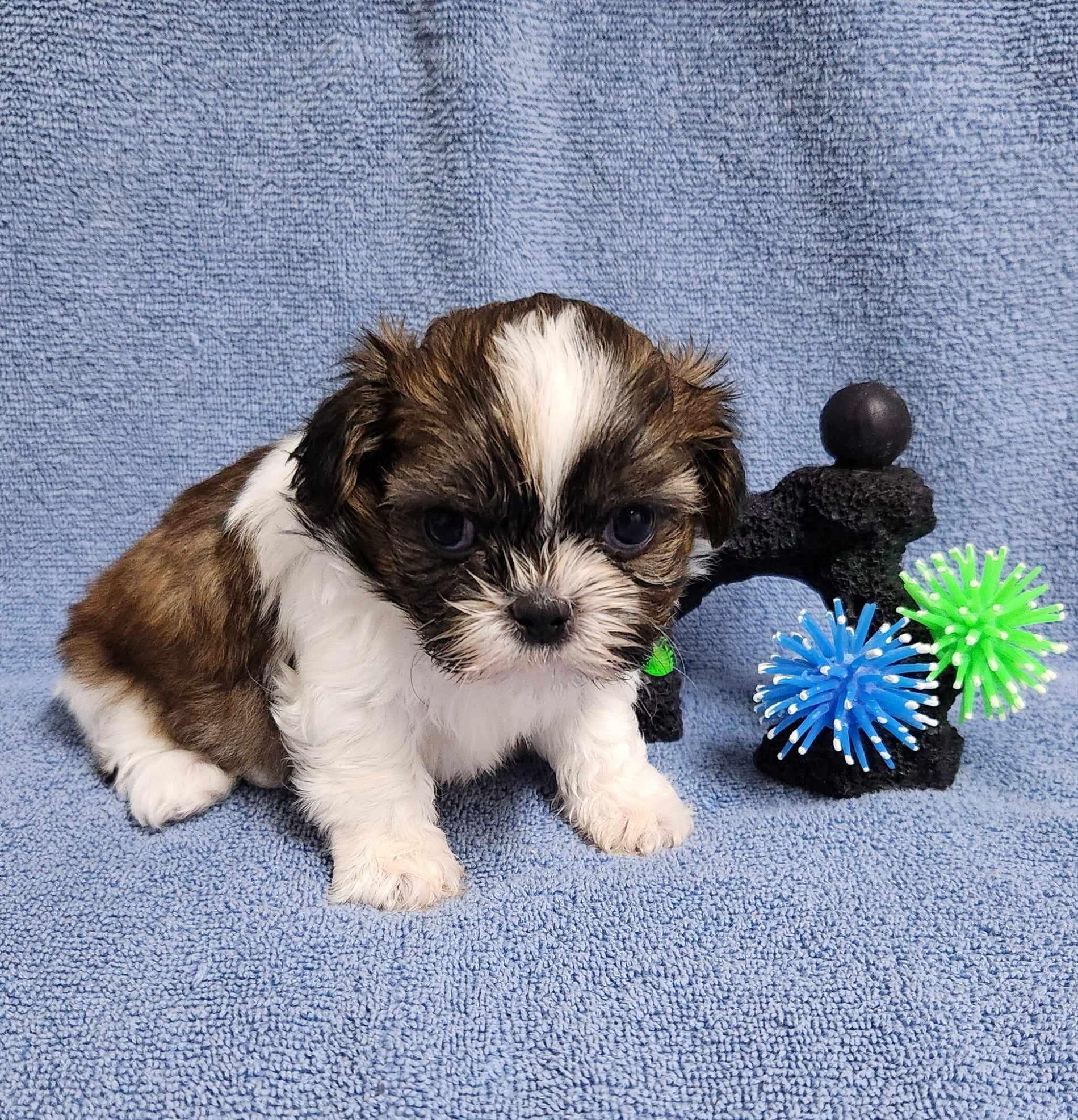 Our Shih Tzu puppies include black, liver, blue, gold, liver and white, gold and white, blue and white, and black and white. Havanese puppies include cream, chocolate, black, chocolate sable, and black and tan. Colors will vary depending on the parent dogs.