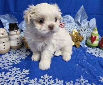 Our Havanese puppies include cream, chocolate, black, chocolate sable, and black and tan. Shih Tzu puppies include black, liver, blue, gold, liver and white, gold and white, blue and white, and black and white. Colors will vary depending on the parent dogs.