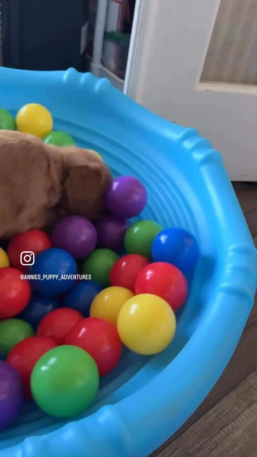 The ball pit was introduced yesterday. Some of the pups haven’t attempted it, some are curious about it, then you’ve got Nova and Dipper who are CRAZY about it! #goldendoodlepuppies #goldendoodle #puppyplaytime #puppies #puppycurriculum #5weeksold #newpuppytoy #ballpit