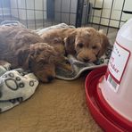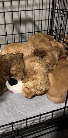 The puppies are 7 weeks old! Some of them will be going home this weekend. 😭. But before they leave we will be doing a vet visit, more car rides, outside time on leashes, and more. #goldendoodlepuppy #goldendoodles #7weeksold #puppy #puppylove