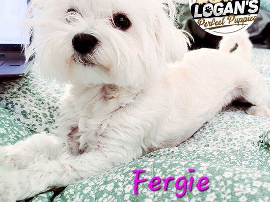 Fergie is an ACA Maltese. She is a diva and rules the roost. She is very smart and loves to snuggle!