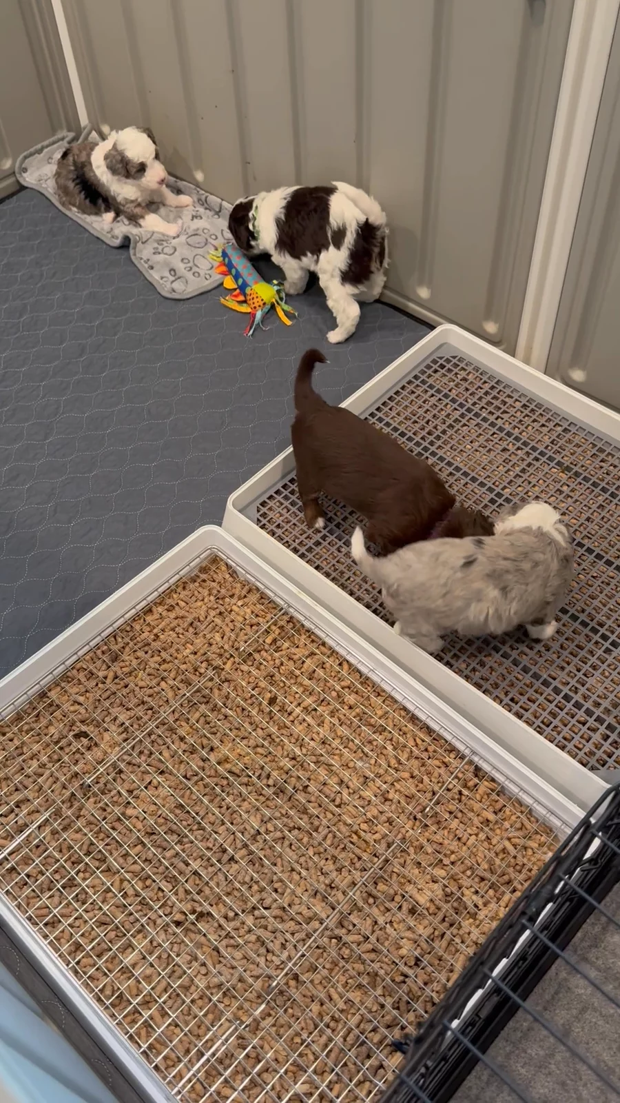 Our puppies live 100% inside our home. My husband or I work part time the entire time we have litters at home so that we can interact with them throughout the day. We handle them daily, provide desensitization to various noises and textured surfaces, and begin their potty training at 4 weeks. Our puppies go home with confidence and ready to be loved on.