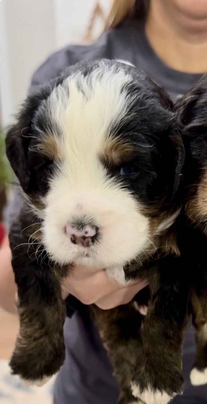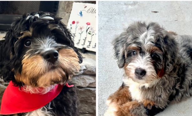 Our Bernedoodle puppies include mini and medium sizes. Aussiedoodle puppies are mini size. Sizes will vary depending on the parent dogs.