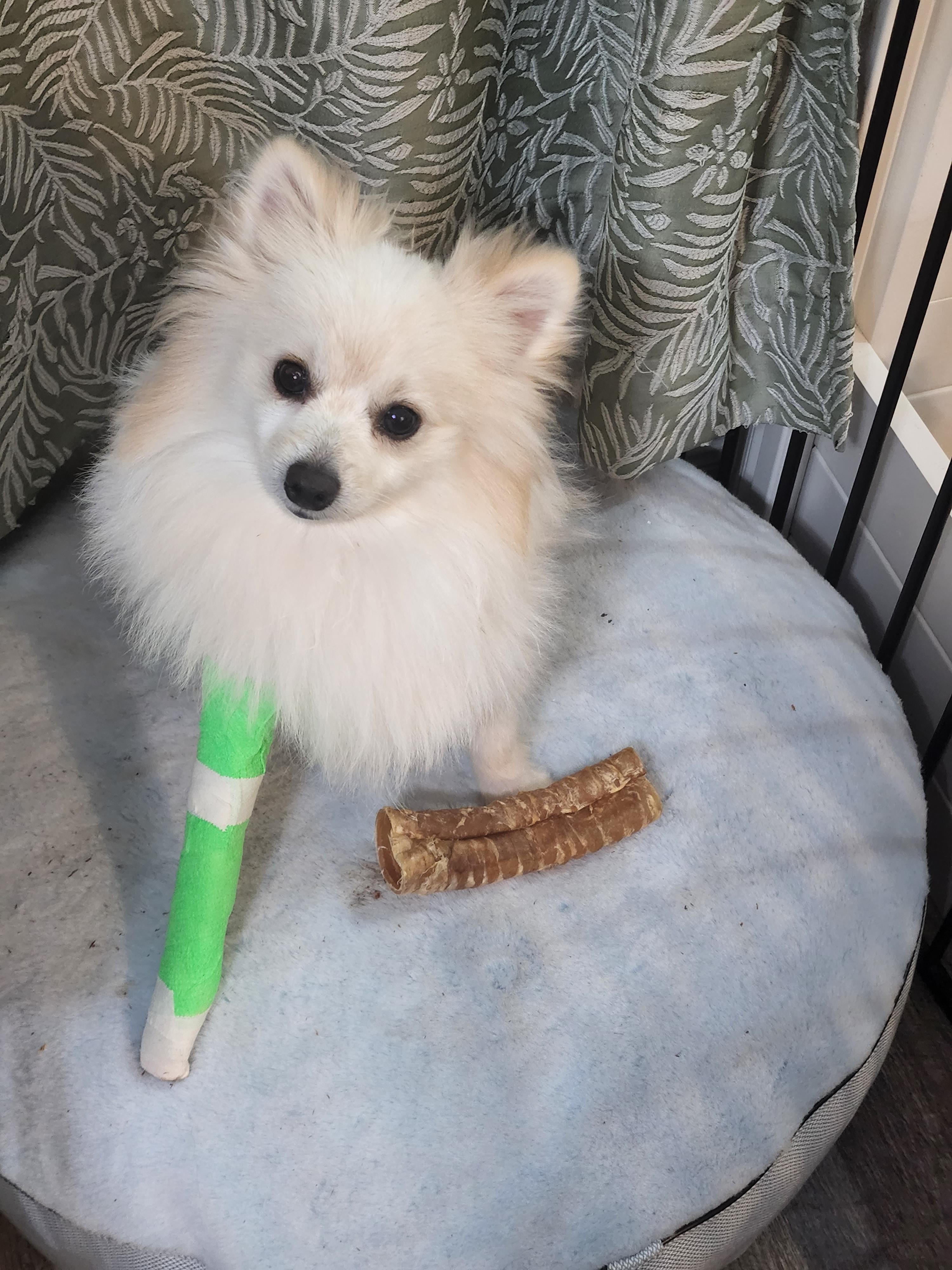 Lee is a male Pomeranian. Carefully selected as a great representative of his breed, Brenda decided to make him part of their program. Brenda has passed Good Dog’s screening process, which involved a review of their breeding practices, environment, and the mental and physical health of their dogs.