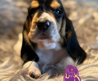 Benito is a male Basset Hound. Carefully selected as a great representative of his breed, S decided to make him part of their program. S has passed Good Dog’s screening process, which involved a review of their breeding practices, environment, and the mental and physical health of their dogs.