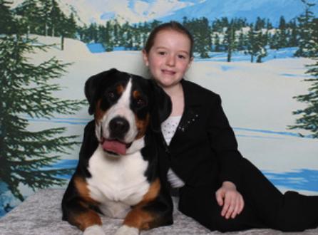 Rizzo is a female Greater Swiss Mountain Dog. Carefully selected as a great representative of her breed, Jacquelyn decided to make her part of their program. Jacquelyn has passed Good Dog’s screening process, which involved a review of their breeding practices, environment, and the mental and physical health of their dogs.