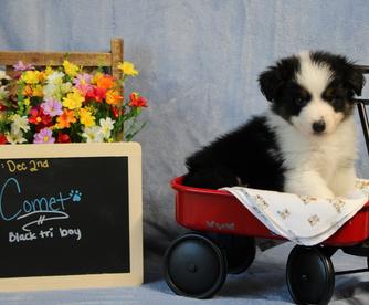 Our puppies include red & white, red tri-color, black & white, black tri, red merle, and blue merle. Colors will vary depending on the parent dogs.