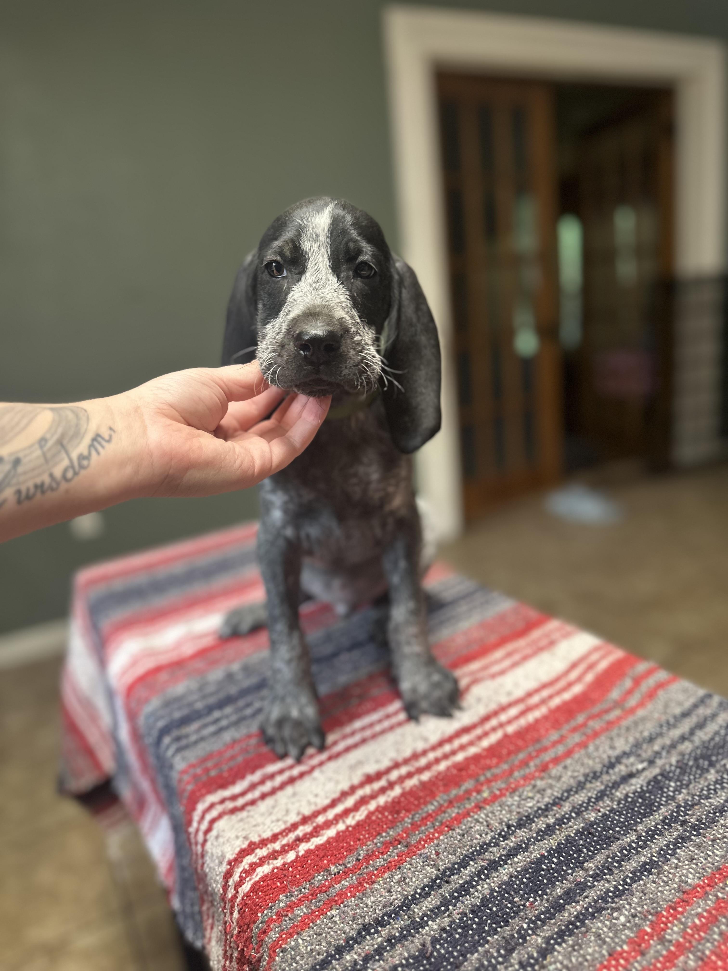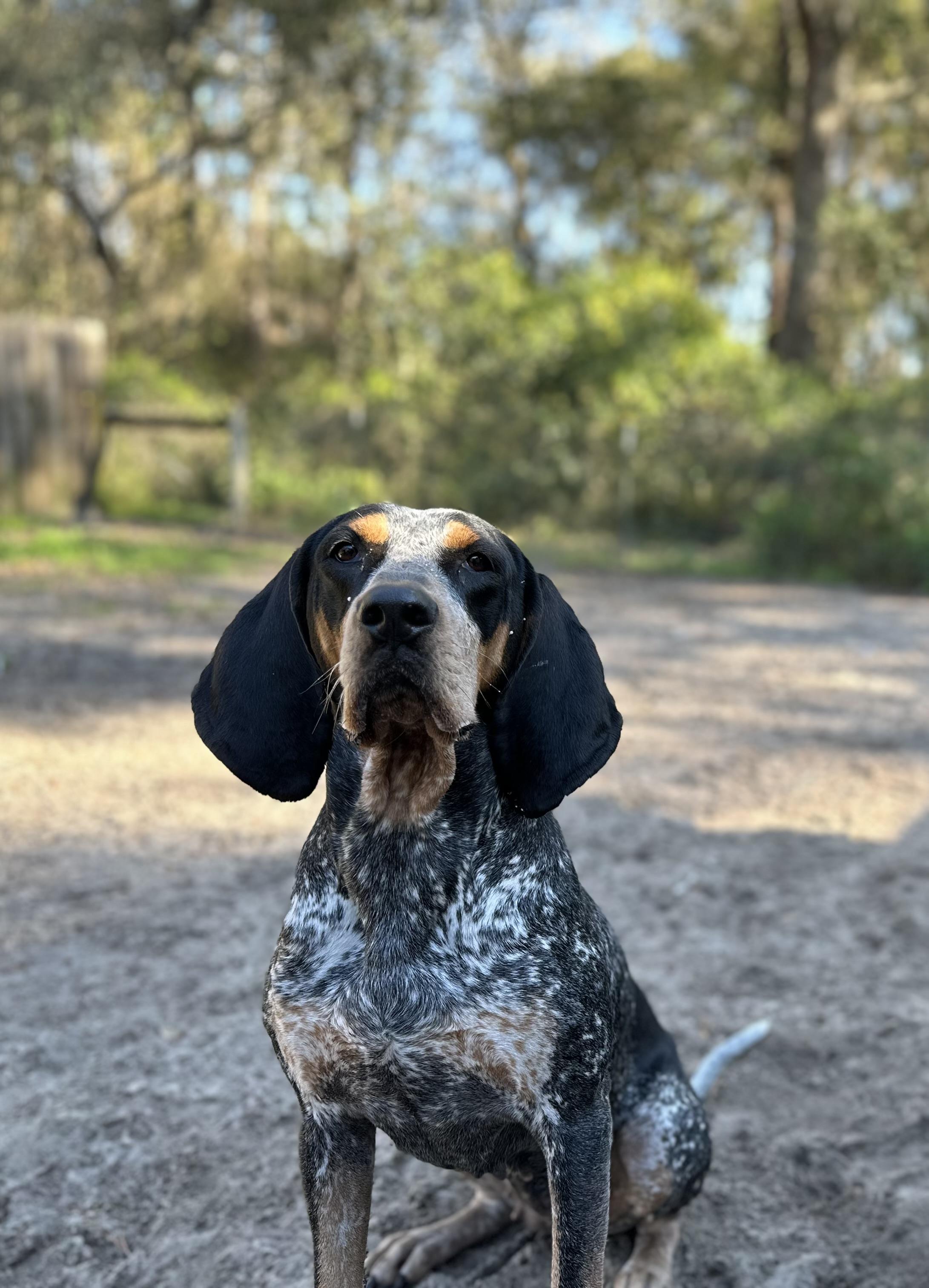 Chief is a male Bluetick Coonhound. Carefully selected as a great representative of his breed, Maddie decided to make him part of their program. Maddie has passed Good Dog’s screening process, which involved a review of their breeding practices, environment, and the mental and physical health of their dogs.