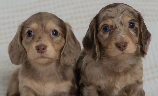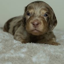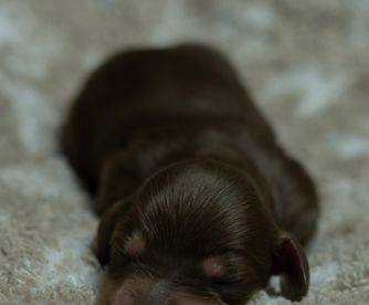 Our puppies include chocolate and tan, black and tan, chocolate and cream, black and cream, and dapple. Colors will vary depending on the parent dogs.