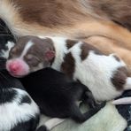 Our puppies include tri-color, black and white, chocolate, and red and white. Colors will vary depending on the parent dogs.