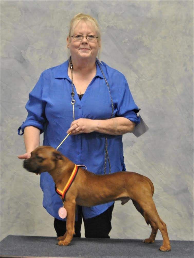 Sweet boy, curious and intelligent good top line, deep red with black mask.