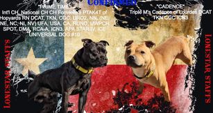 INTNL CANINE NINJA, AP, DMA, BL DEA, URO2, NN, (NE, NC, NI, NV) UFA, USA, CA, DDA, RNO, APA Star 5, ICE INTERNATIONAL CHAMPION, ICE UNIVERSAL DOG #10, RCA-A, UWPCH, DNA, RCN-A, NATIONAL CH, CH FONVIELLES PTAK4T of Hopyards RN BCAT TKN SPOT CGC