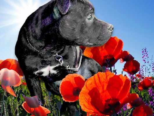 Inka is a female Staffordshire Bull Terrier. Carefully selected as a great representative of her breed, Tammy decided to make her part of their program. Tammy has passed Good Dog’s screening process, which involved a review of their breeding practices, environment, and the mental and physical health of their dogs.