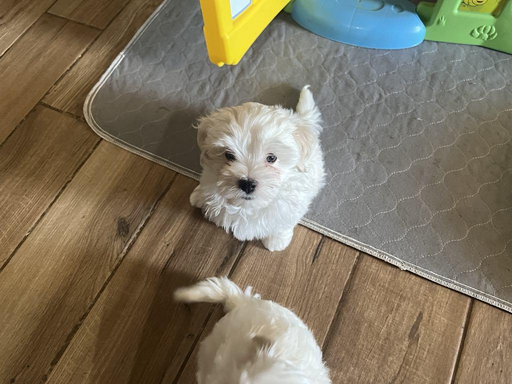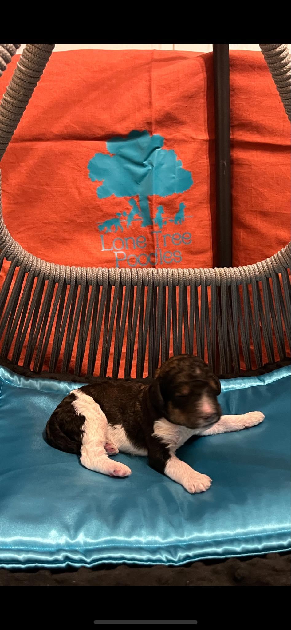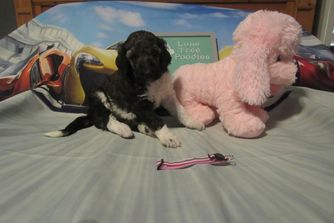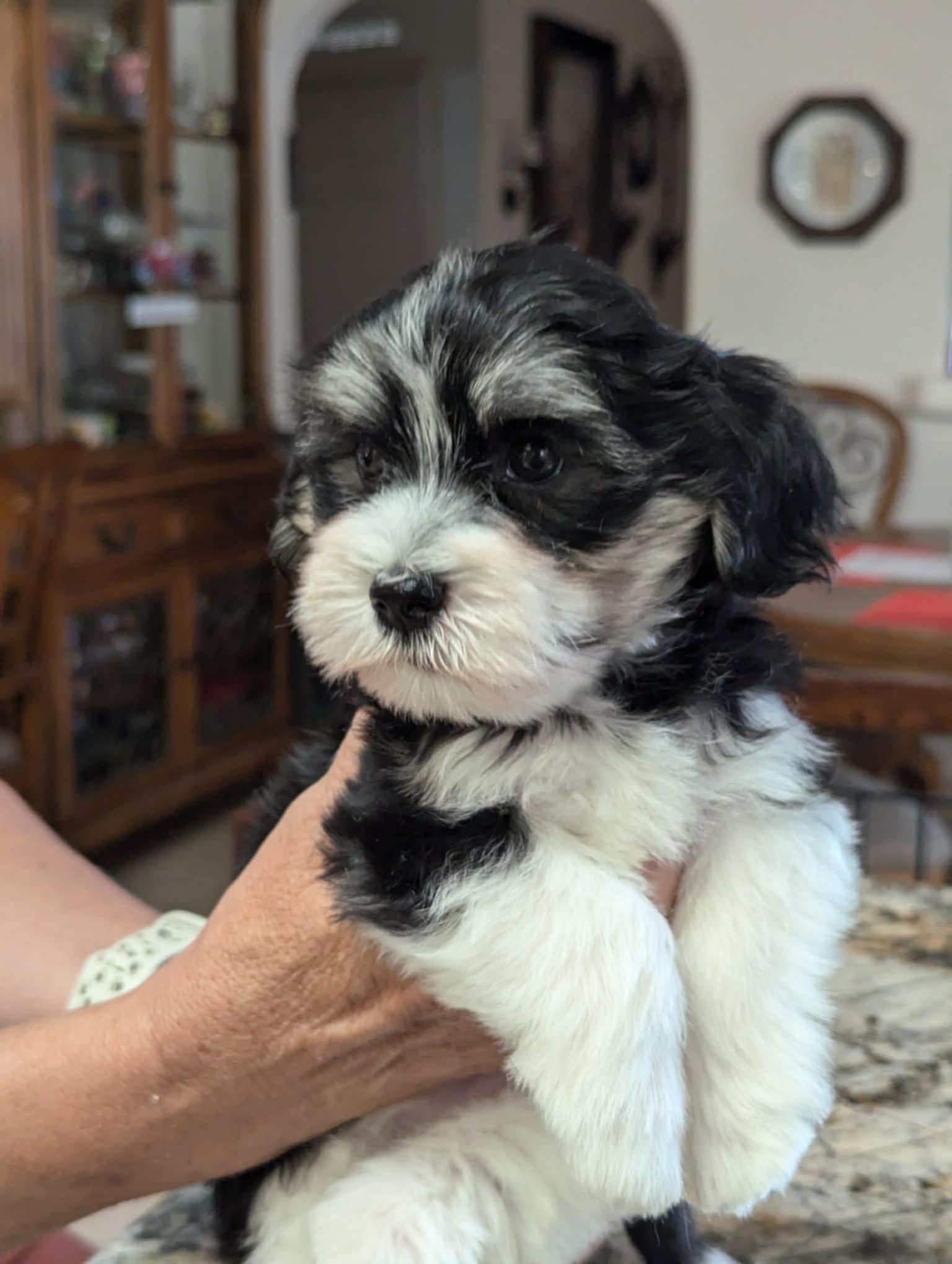 Our Havanese puppies include white and black and tan. Poodle puppies are parti. Colors will vary depending on the parent dogs.
