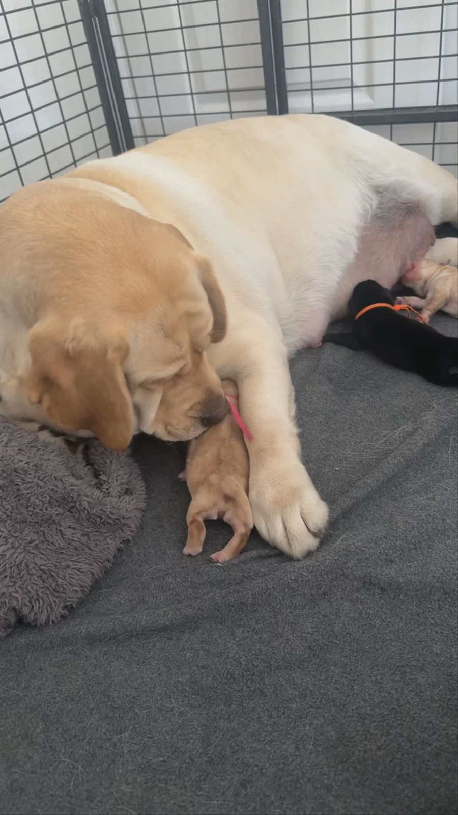 Remi x George puppies are here! Remi was an absolute rockstar. We have 3 black males available. Ready to go home Valentines Day weekend. 🤎🖤