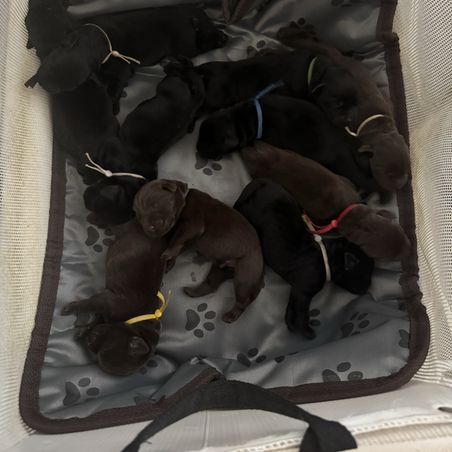 Our puppies include black, chocolate, and yellow. Colors will vary depending on the parent dogs.