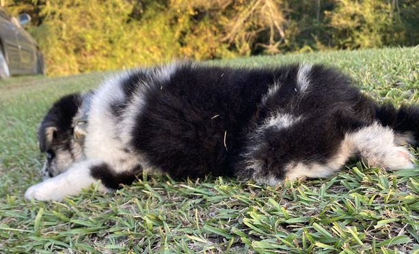 Our puppies include blue merle, black tri, red tri, and red merle. Colors will vary depending on the parent dogs.