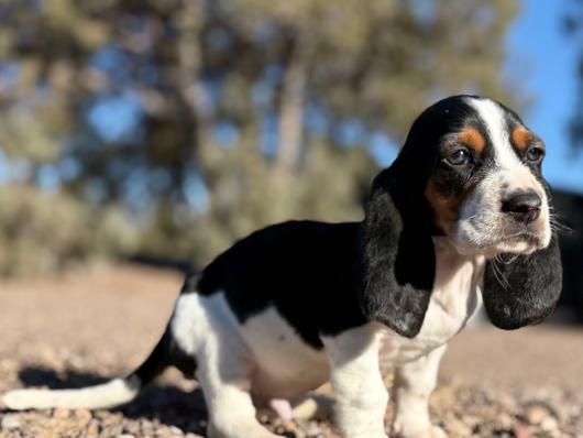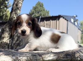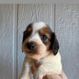 Our Dachshund puppies include piebald, cream, red, chocolate, fawn (isabella), brindle, fawn (isabella) and cream, blue and cream, blue and tan, chocolate and tan, fawn (isabella) and tan, black and tan, and dapple. Basset Hound puppies include black and brown, tan and white, white black and red, mahogany and white, brown and white, black white and tan, black tan and white, black brown and white, and red and white. Colors will vary depending on the parent dogs.