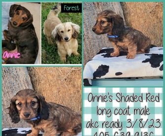 I'm Randi R., the breeder behind Long Doggy Acres Miniature Dachshunds located in Lexington, OK. Our dogs and pups are raised in our home and are loved as family. We strive to produce high-quality puppies and companions. Our goal is to ensure every dog that comes from our program is set up to live a happy and healthy life and is prepared for its future role when it leaves our care. We provide each of our pups with lots of socialization and love, and we are dedicated to maintaining responsible breeding policies.