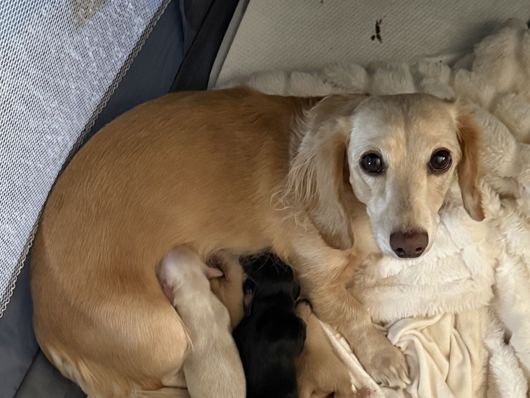 Polly is a female Dachshund. Carefully selected as a great representative of her breed, Randi decided to make her part of their program. Randi has passed Good Dog’s screening process, which involved a review of their breeding practices, environment, and the mental and physical health of their dogs.