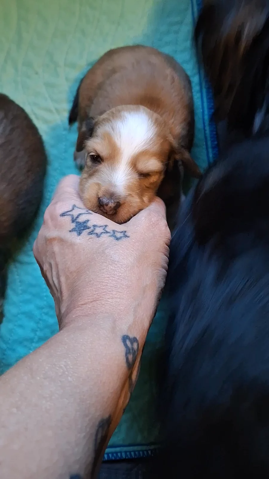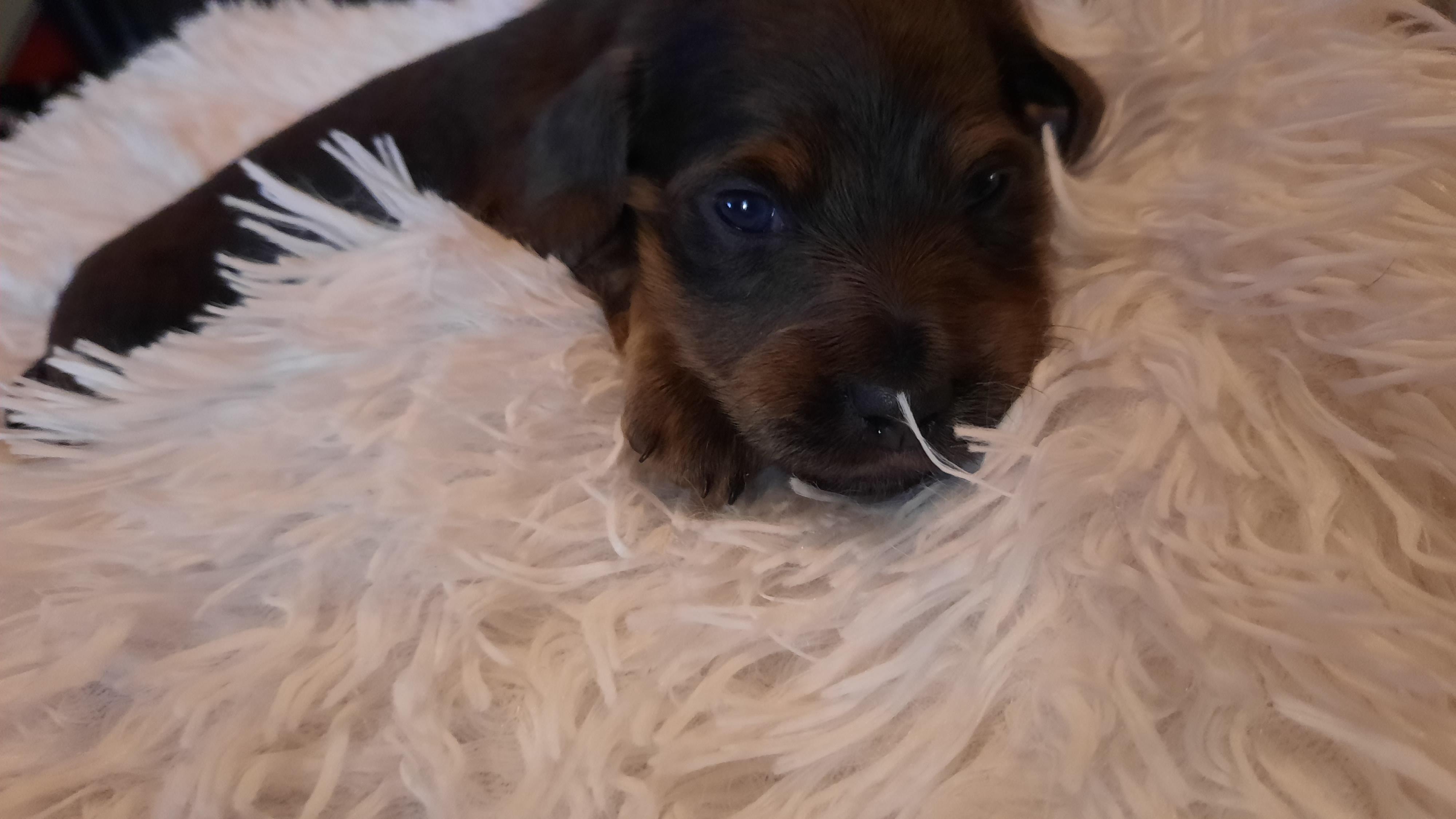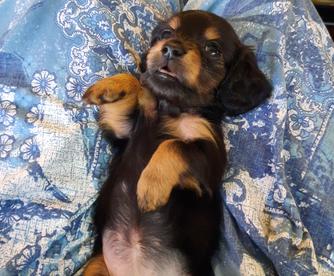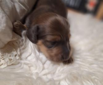 Kim was excellent to work with when we were looking for our first Doxie baby! We selected a puppy shortly after he was born and she was willing to FaceTime and keep us updated regularly on Frankie. Kim kindly met me at the airport when I arrived from out of state and provided all of the info and supplies I needed to welcome Frankie home. As for the puppy, besides being gorgeous he has the BEST personality and is easygoing, well mannered, and friendly. He got a clean bill of health from the vet and is in great shape. Highly recommend and will use in the future!!!