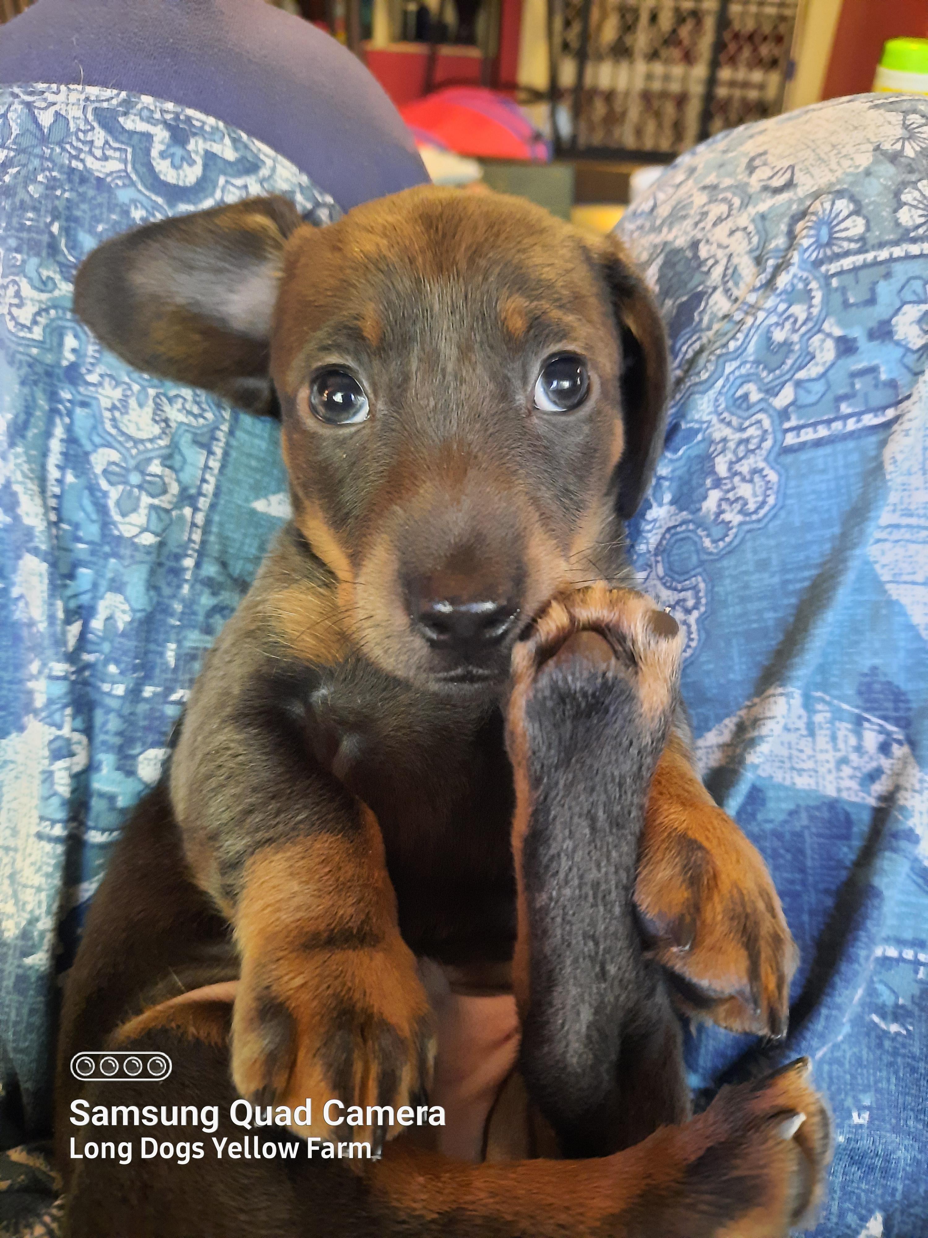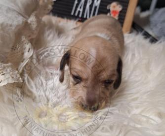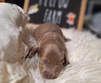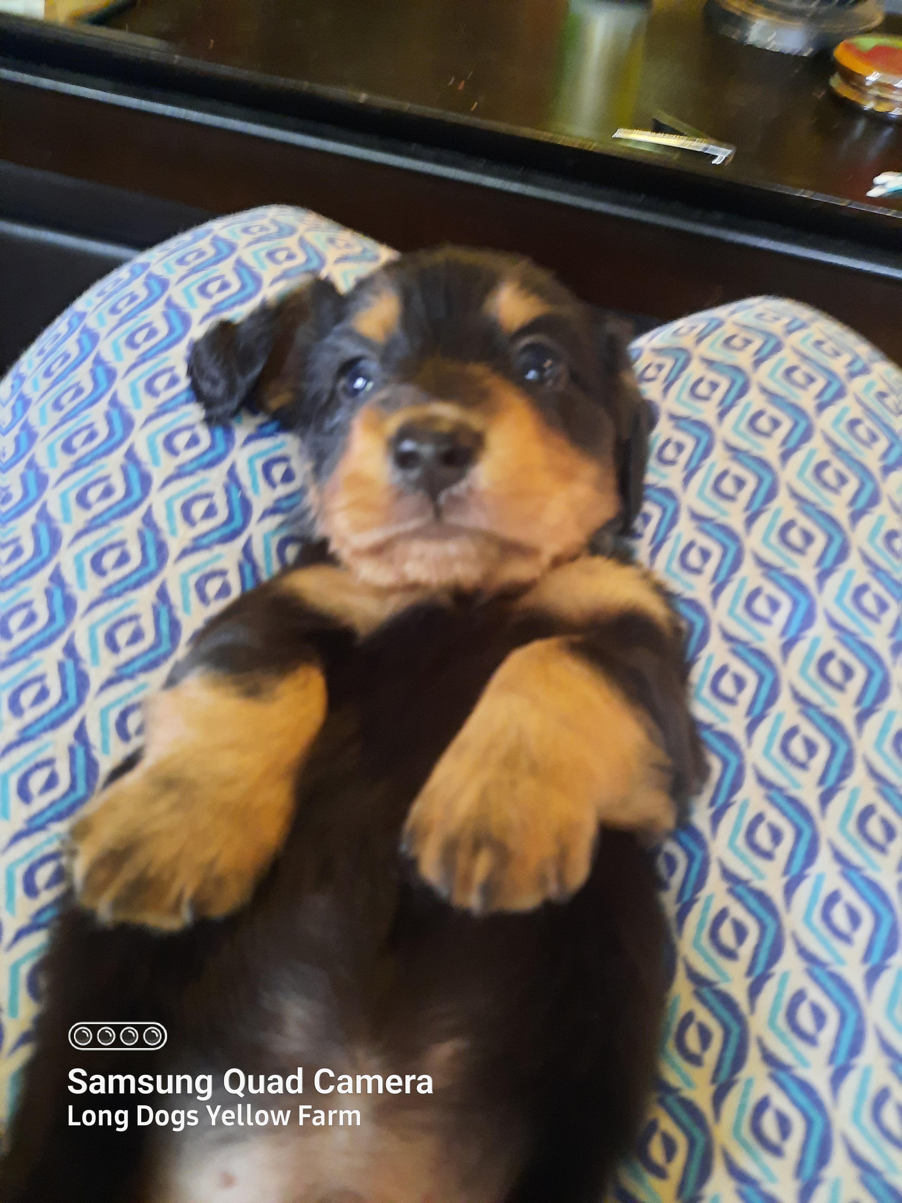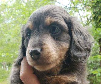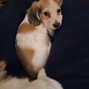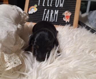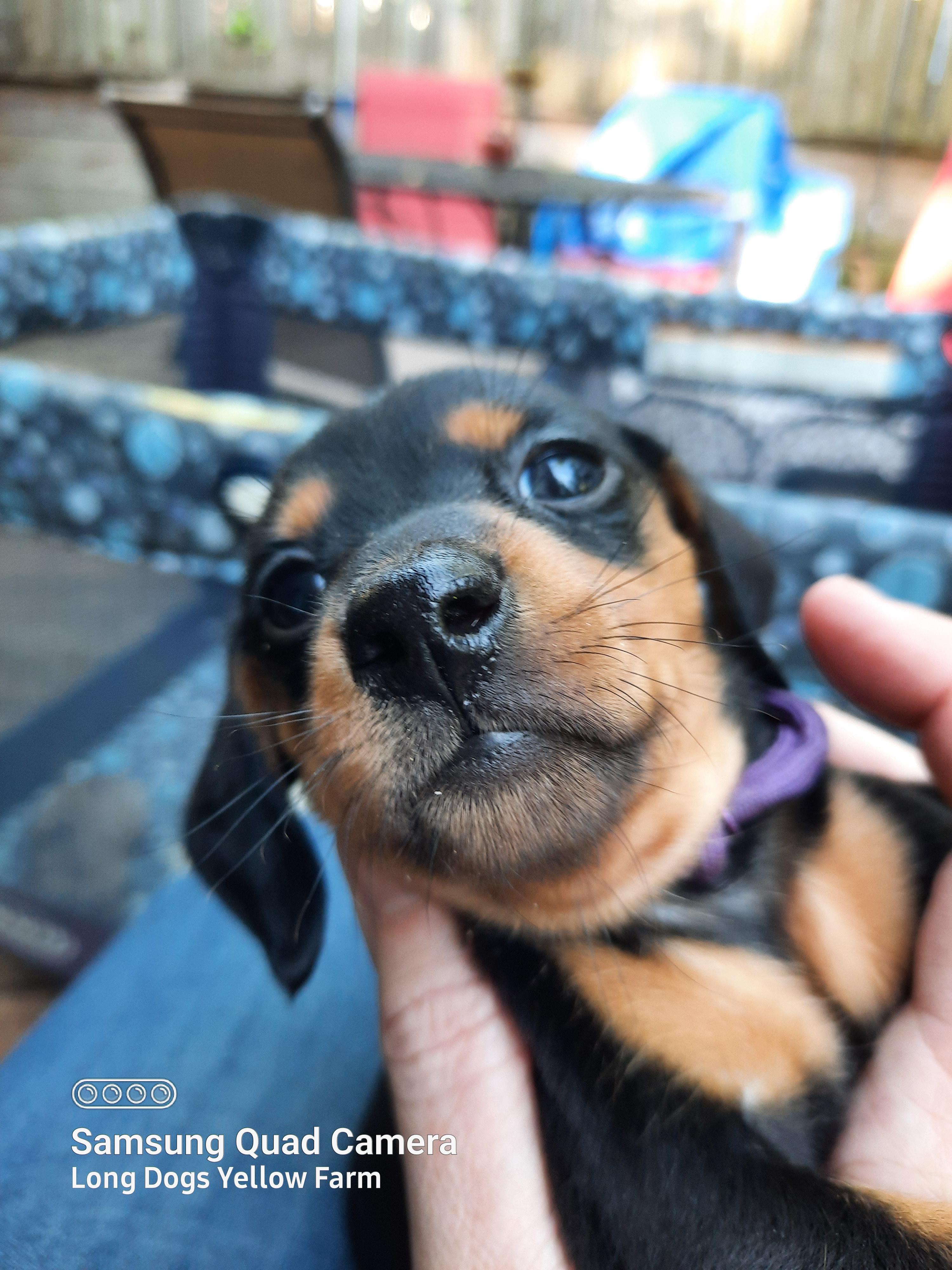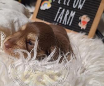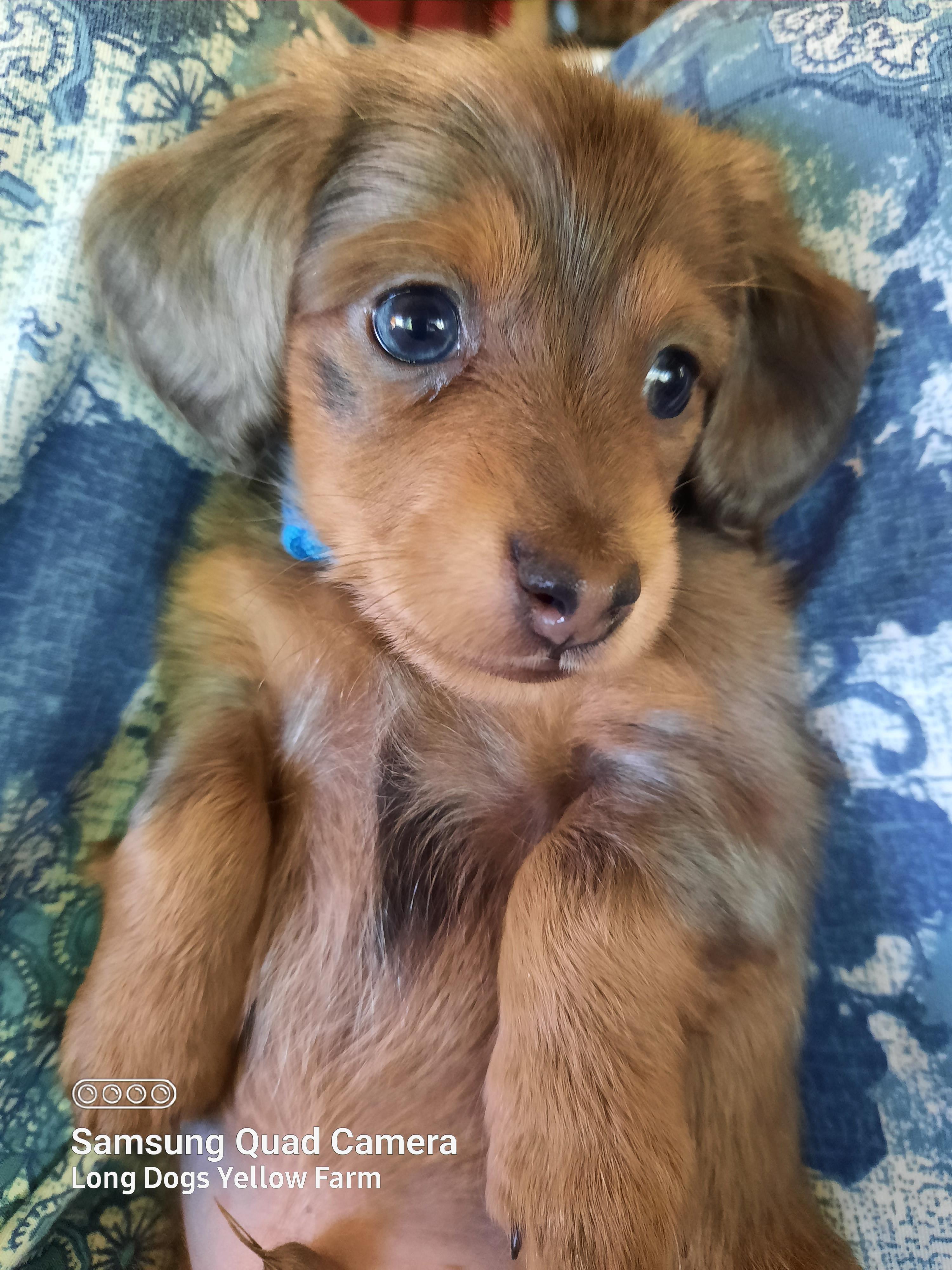 I had a wonderful experience with Kimberly at Long Dogs Yellow Farm. She was very responsive and kept me up to date on how my puppy was growing, etc. I enjoyed watching the videos that she posted. You can tell she loves her dogs and all of the puppies that she raises. My puppy (Rosie) is such a beautiful girl and it was obvious that she had been very socialized ~ both with people, her littermates, and older dogs. That made it very easy to introduce her to our other pups and they quickly accepted each other. I plan to go to her in the future when we are ready to add another pup to our pack ~ hopefully a cream smooth haired.
