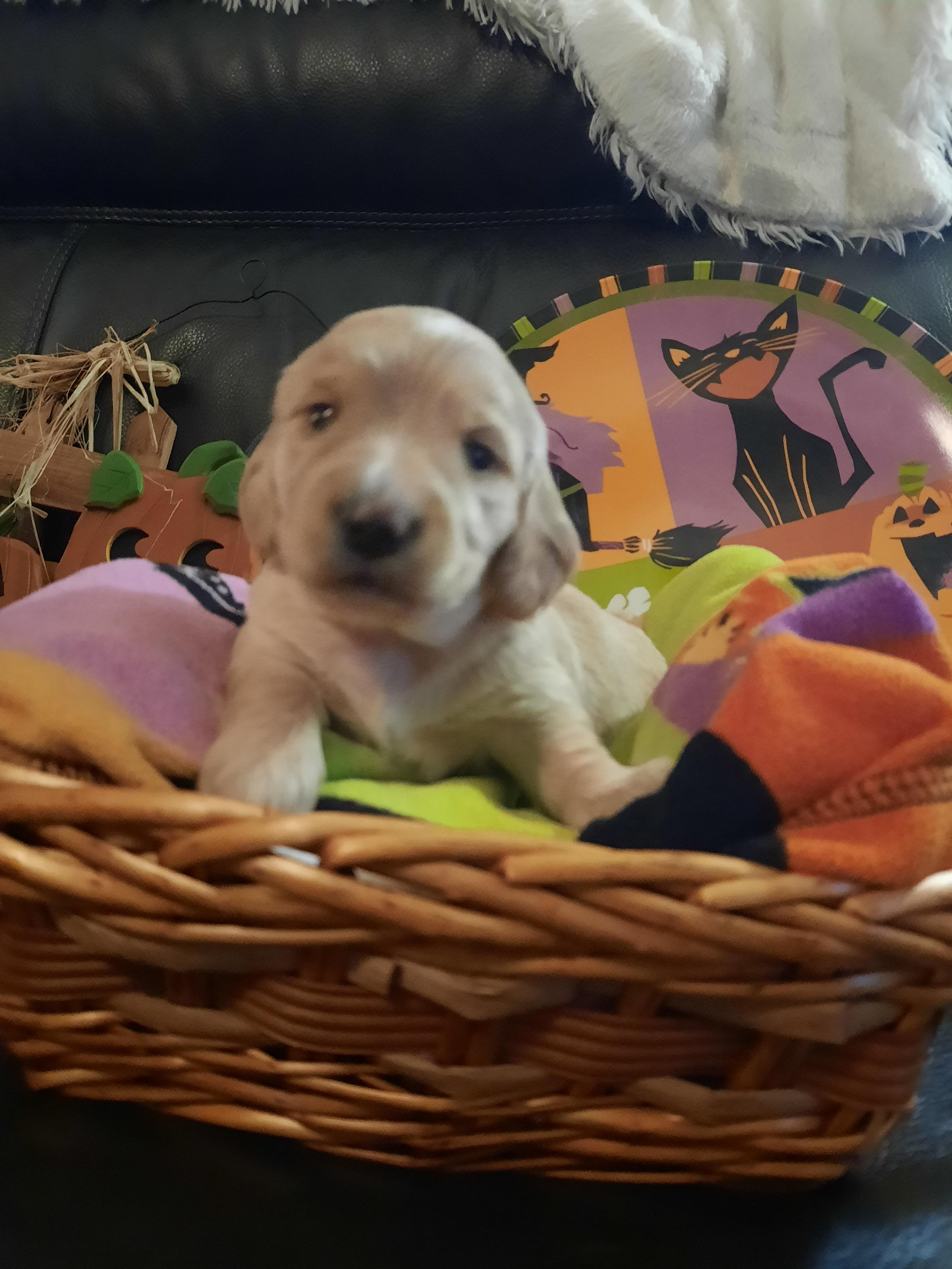 Our puppies include cream, red, chocolate and cream, black and tan, and black and cream. Colors will vary depending on the parent dogs.
