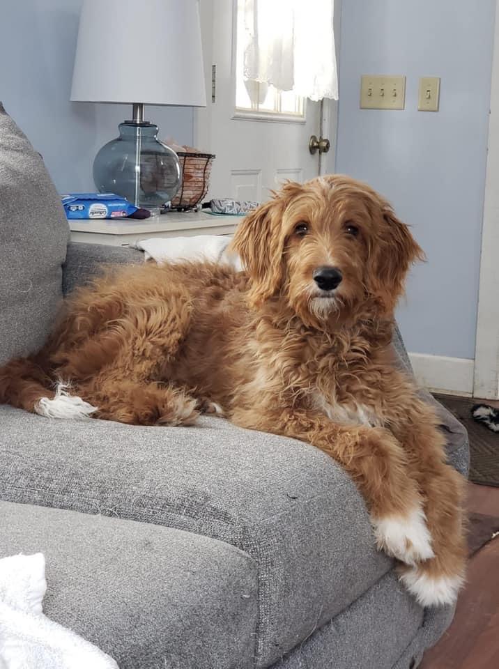 Peaches is a mini golden doodle, she weighs about 32 pounds and is in perfect health.