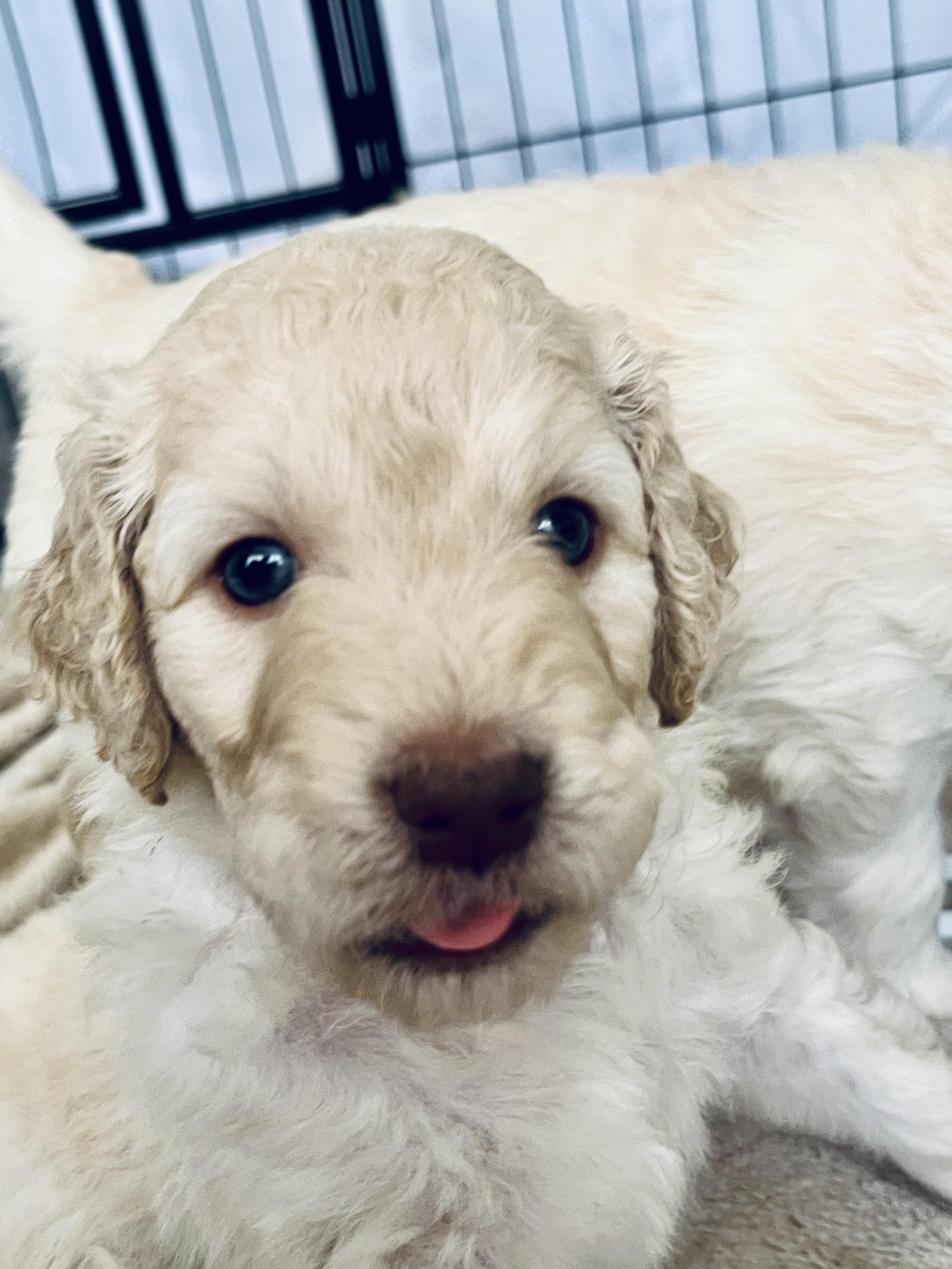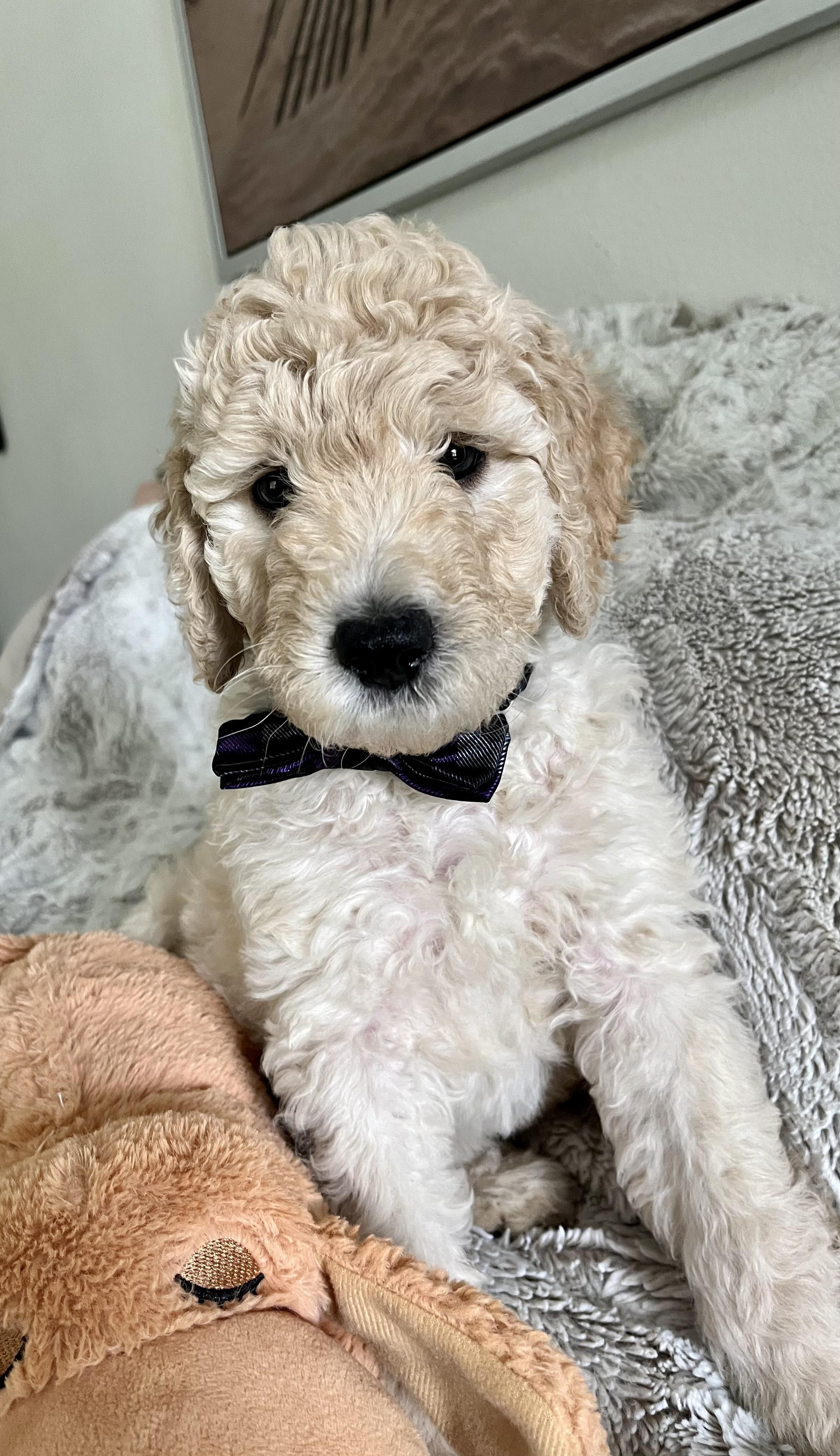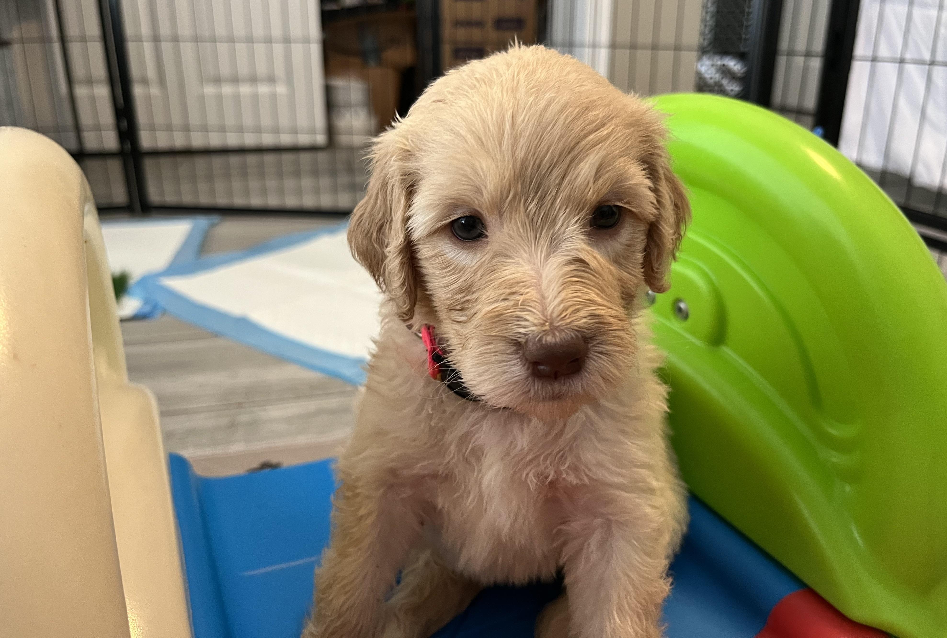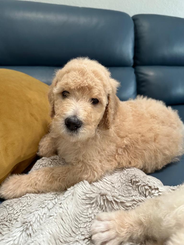 Samson is a male Goldendoodle. Carefully selected as a great representative of his breed, Lorraine decided to make him part of their program. Lorraine has passed Good Dog’s screening process, which involved a review of their breeding practices, environment, and the mental and physical health of their dogs.