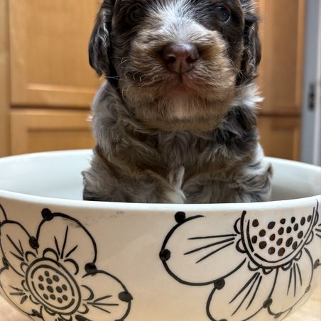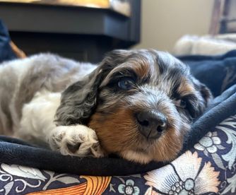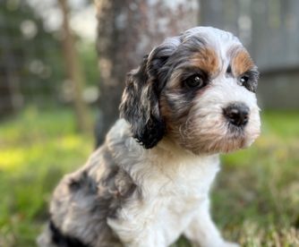 Our Bernese Mountain Dog puppies are black rust and white. Cockapoo puppies are black and tan. Yorkipoo puppies include merle and sable. Bernedoodle puppies include phantom and blue merle. Colors will vary depending on the parent dogs.