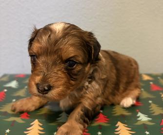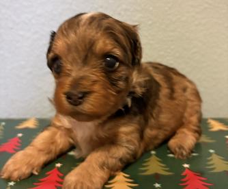 Our Bernedoodle puppies include phantom and blue merle. Bernese Mountain Dog puppies are black rust and white. Cockapoo puppies are black and tan. Yorkipoo puppies include merle and sable. Colors will vary depending on the parent dogs.