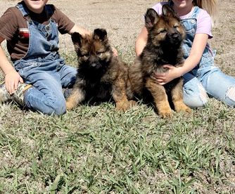 German Shepherd puppies include stock and long coat varieties. Coat types may vary depending on the parent dogs.