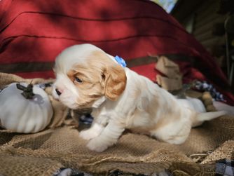 KIM stayed in touch & sent us regular updates. Good Dog purchasing was simple to follow. 💜Purple collar girl became our Reba girl, a wonderful fur baby to love. She is a beautiful Blenheim and great disposition. So playful and filled with love and kisses.