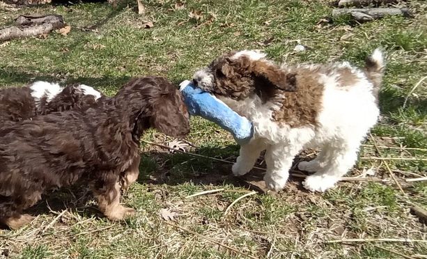 By no means are we breeders! We have 2 accidental litters of F2b Aussiedoodle. We have followed the AKC recommendations on worming & vaccination schedule, wanting our puppies to be as healthy as possible. All puppies have had Healthy Puppy Check-Ups and have received a clean bill of health.