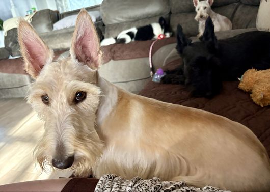 Shannon was wonderful to work with. She was very responsive, very accommodating and went out of her way to get out Winnie Claire to us! She stocked the goodie bag full of treats and toys to make the flight home easy! Winnie Claire’s temperament is exactly what we expected. She’s a sassy sweet girl! Thank you Lottie Dottie’s Scottie’s!!