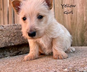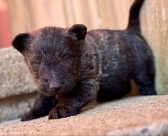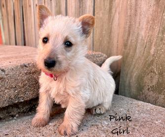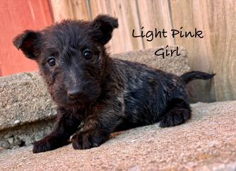 Our Papillon puppies include white and black, sable, and white black and tan. Scottish Terrier puppies include black brindle and wheaten. Colors will vary depending on the parent dogs.