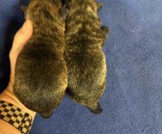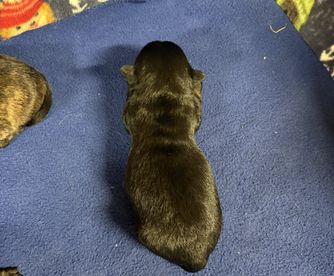 Hi Shannon, "Anna" Scottie Dog finally got her vet puppy check today as appointments are quite backed up. Anna weighs 6.2 pounds and had a Lyme disease shot and follows up with additional ones in a couple of weeks. Anna is very cuddly, also can be very busy getting into mischief. Sophie, 15 year old Scottie essentially ignores puppy nonsense. Anna is good scooting after our cats which is fun for her. Anna is a *perfect* little Scottie with a big character for the breed. Meredith & Sibley