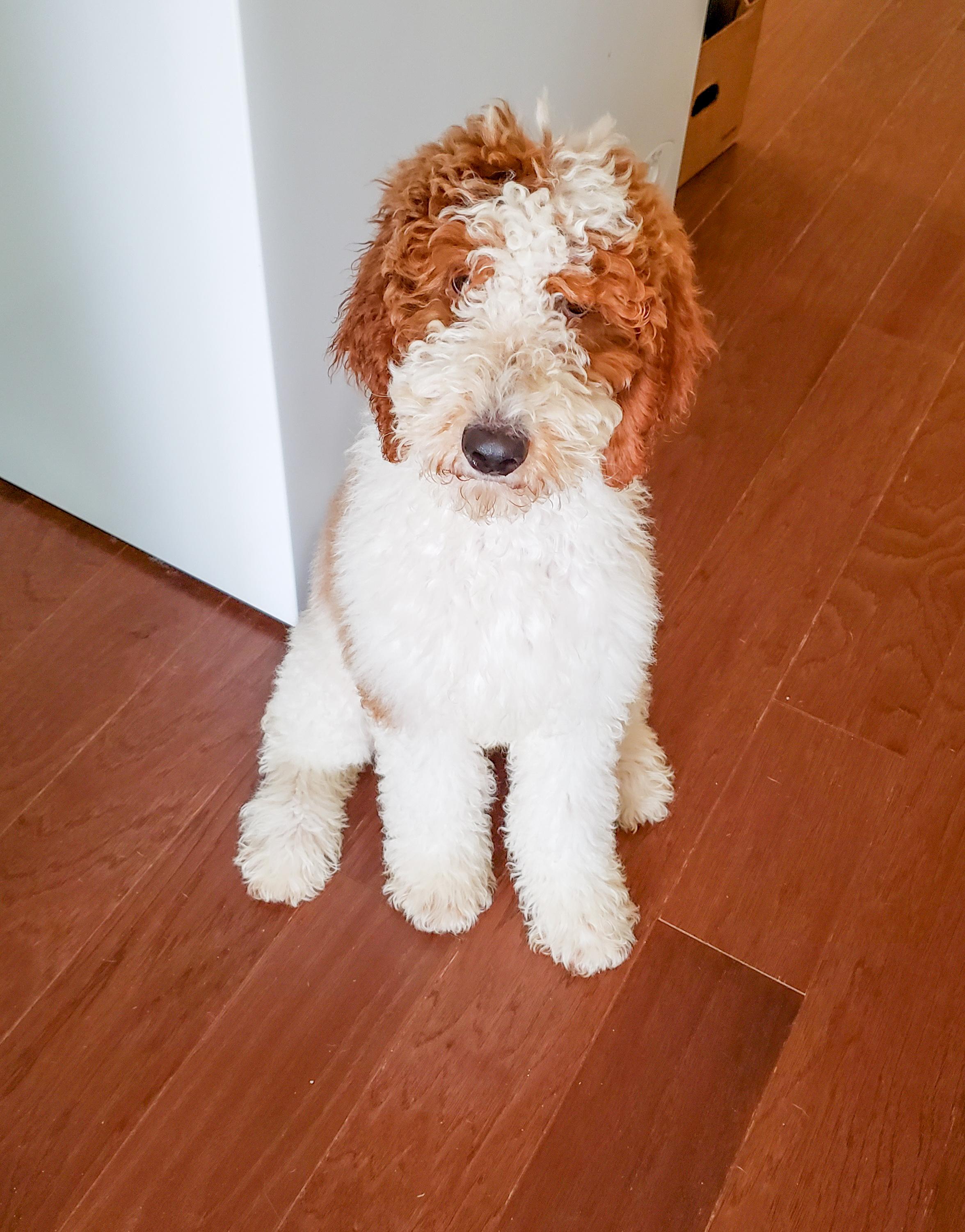 Our Bernedoodle puppies include tri-color and merle. Aussiedoodle puppies are red merle. Goldendoodle puppies include cream, apricot, red, and parti. Poodle puppies include apricot, red, parti, and phantom. Colors will vary depending on the parent dogs.