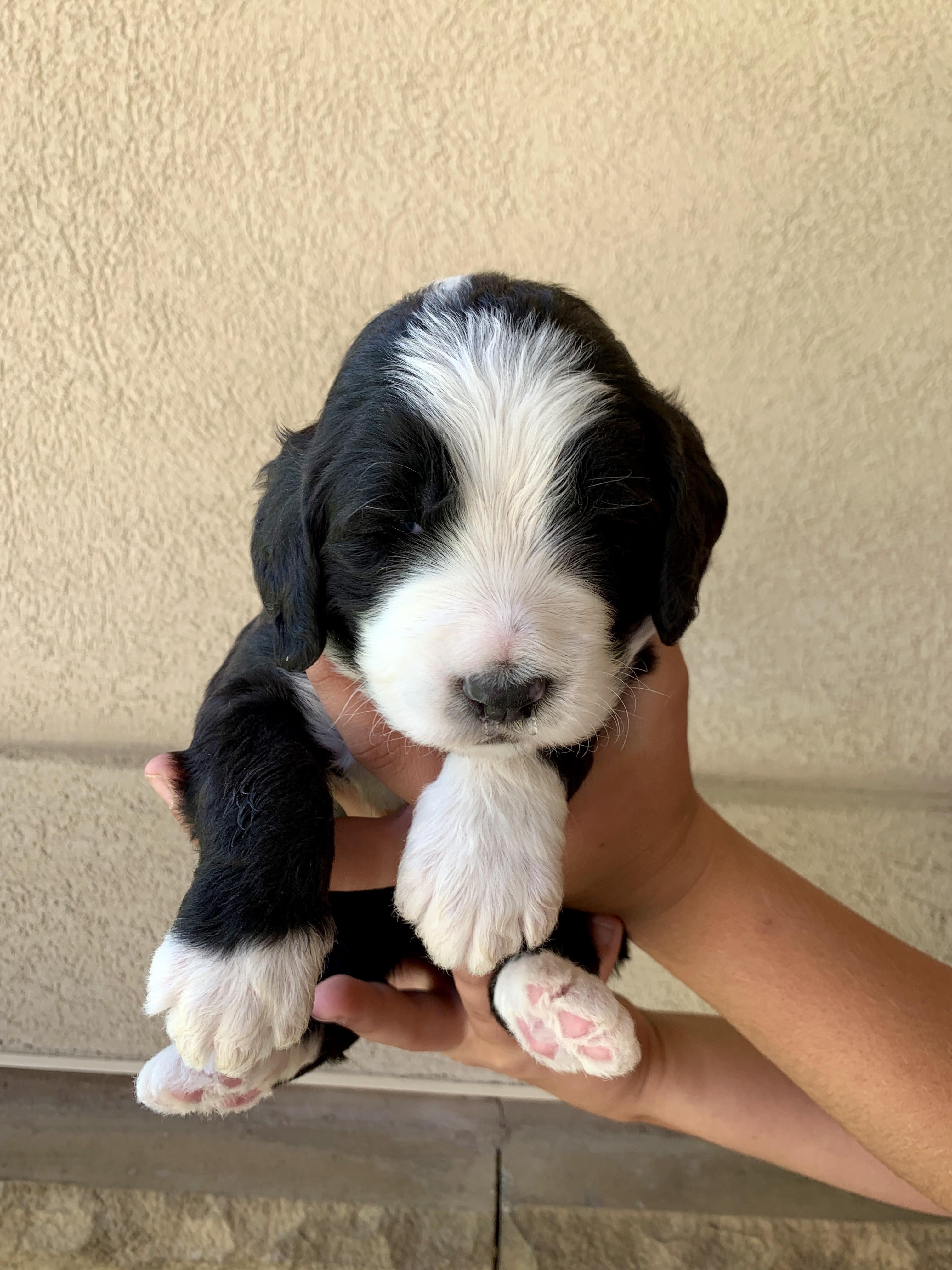Bella is a female Bernedoodle. Carefully selected as a great representative of her breed, Elonna decided to make her part of their program. Elonna has passed Good Dog’s screening process, which involved a review of their breeding practices, environment, and the mental and physical health of their dogs.