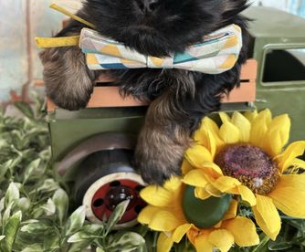 “AKC registered comes with first shots, dewormer, potty pad trained and basket of essentials and goodies.”