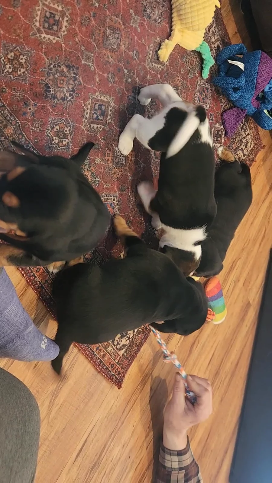 Current litter of sweet , little black and white beagles. They were born on christmas morning!