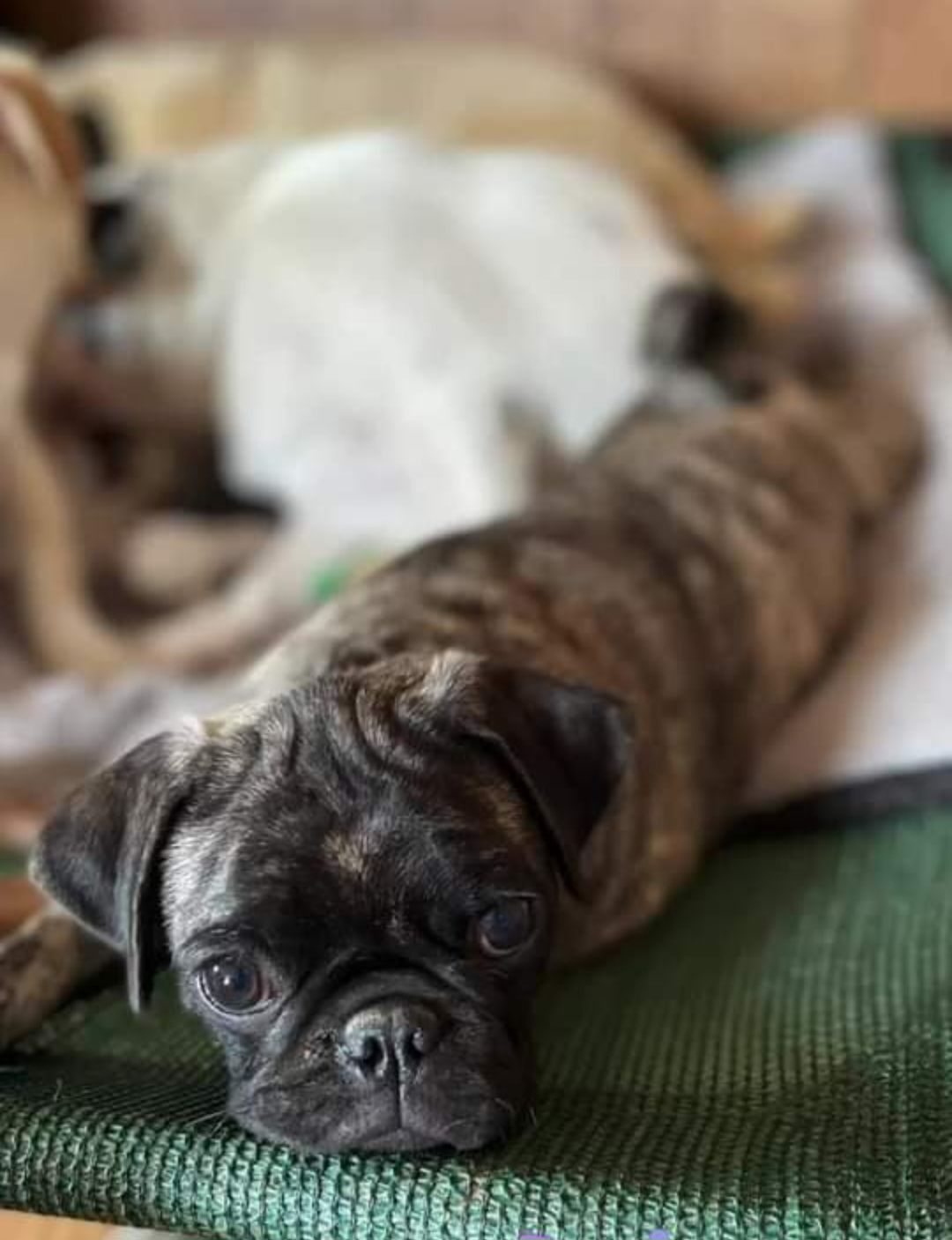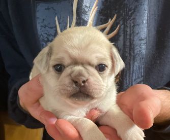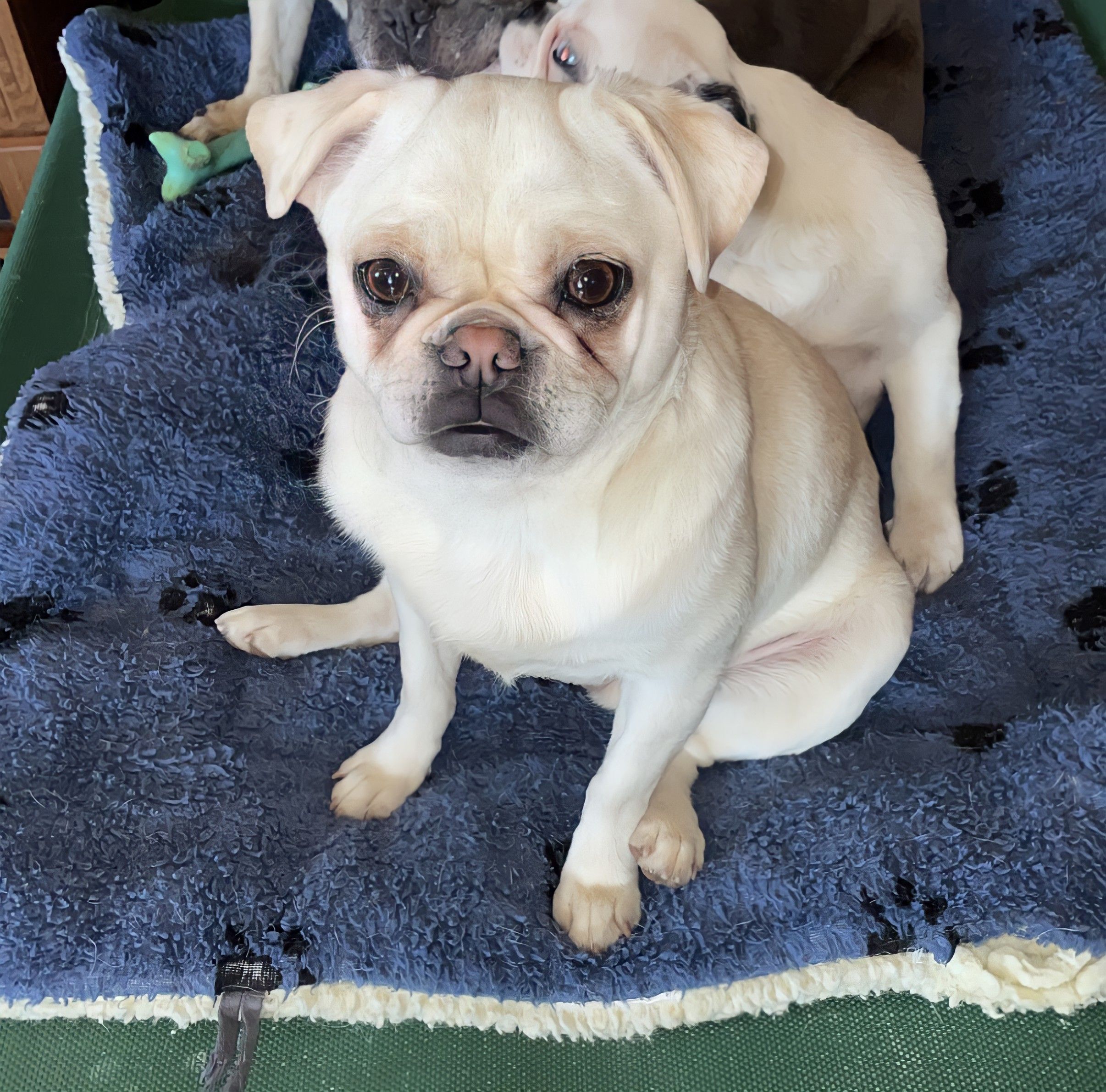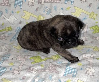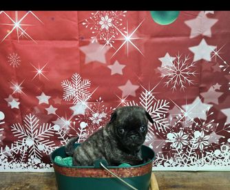 Rufus is a male Pug (Non-standard). Carefully selected as a great representative of his breed, Mercadies decided to make him part of their program. Mercadies has passed Good Dog’s screening process, which involved a review of their breeding practices, environment, and the mental and physical health of their dogs.