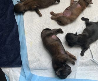 The puppies are three weeks today and they are getting up on their paws and exploring and trying to walk around they’re doing very well