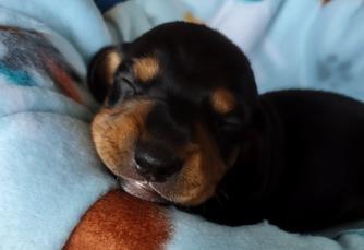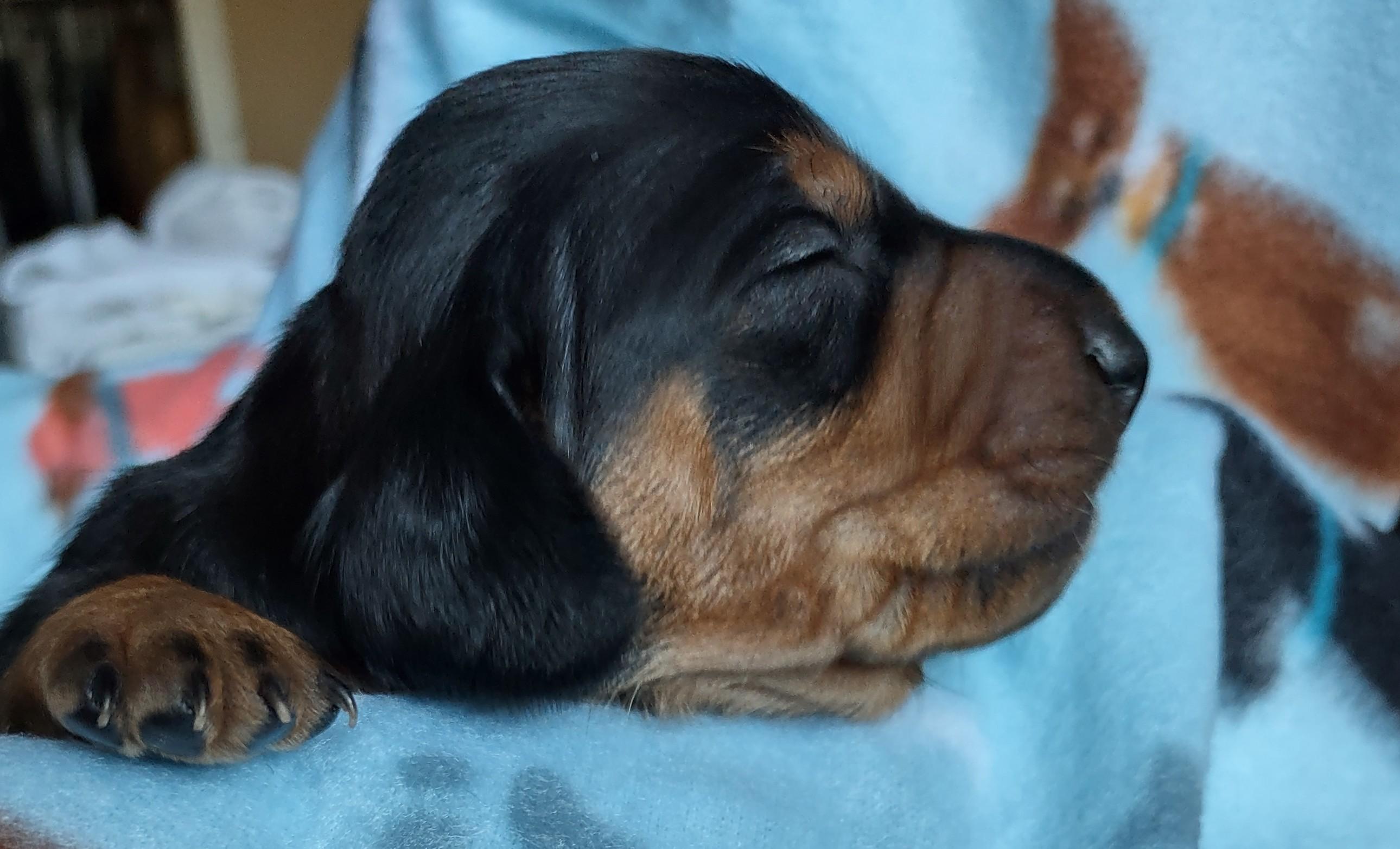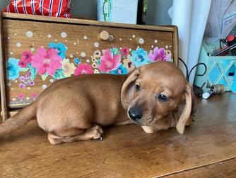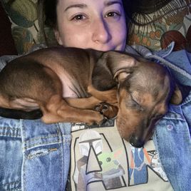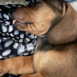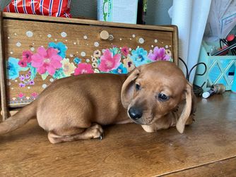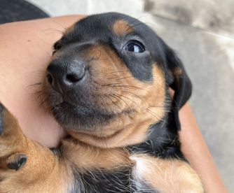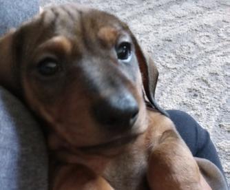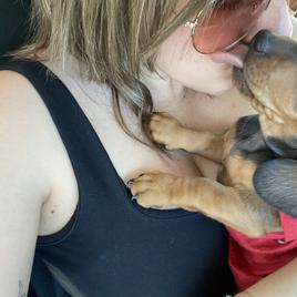 Hank, my new puppy from loveable Doxie has brought so much happiness to me and my family. He is such a cuddle bug and loves to give kisses! He is playful and has lots of personality to go around. Love this little cuddle ball!
