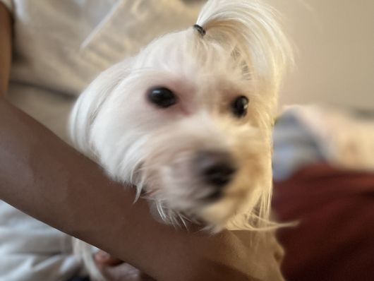 Marco is a male Maltese about 2 years old. Carefully selected as a great representative of his breed, Sheronda decided to make him part of their program. Sheronda has passed Good Dog’s screening process, which involved a review of their breeding practices, environment, and the mental and physical health of their dogs.