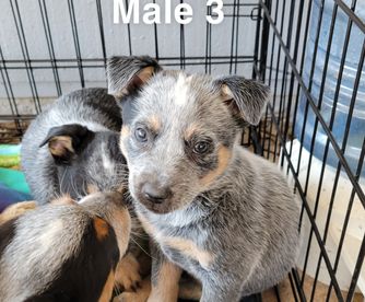 Our puppies include blue speckled, red speckled, red mottled, blue mottled, and blue. Colors will vary depending on the parent dogs.