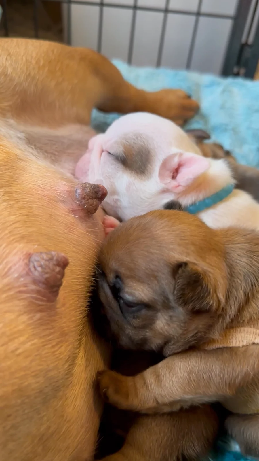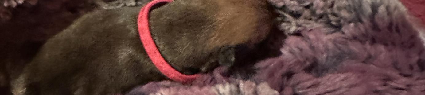 Pudding was made to be a mama such an amazing loving personality who gently reminds you to rub her by patting you with her paw! She is quite healthy and is health tested clear through Canine Health Check . This is her second litter! She enjoys loving on her babies and should get a mother of the year award!!