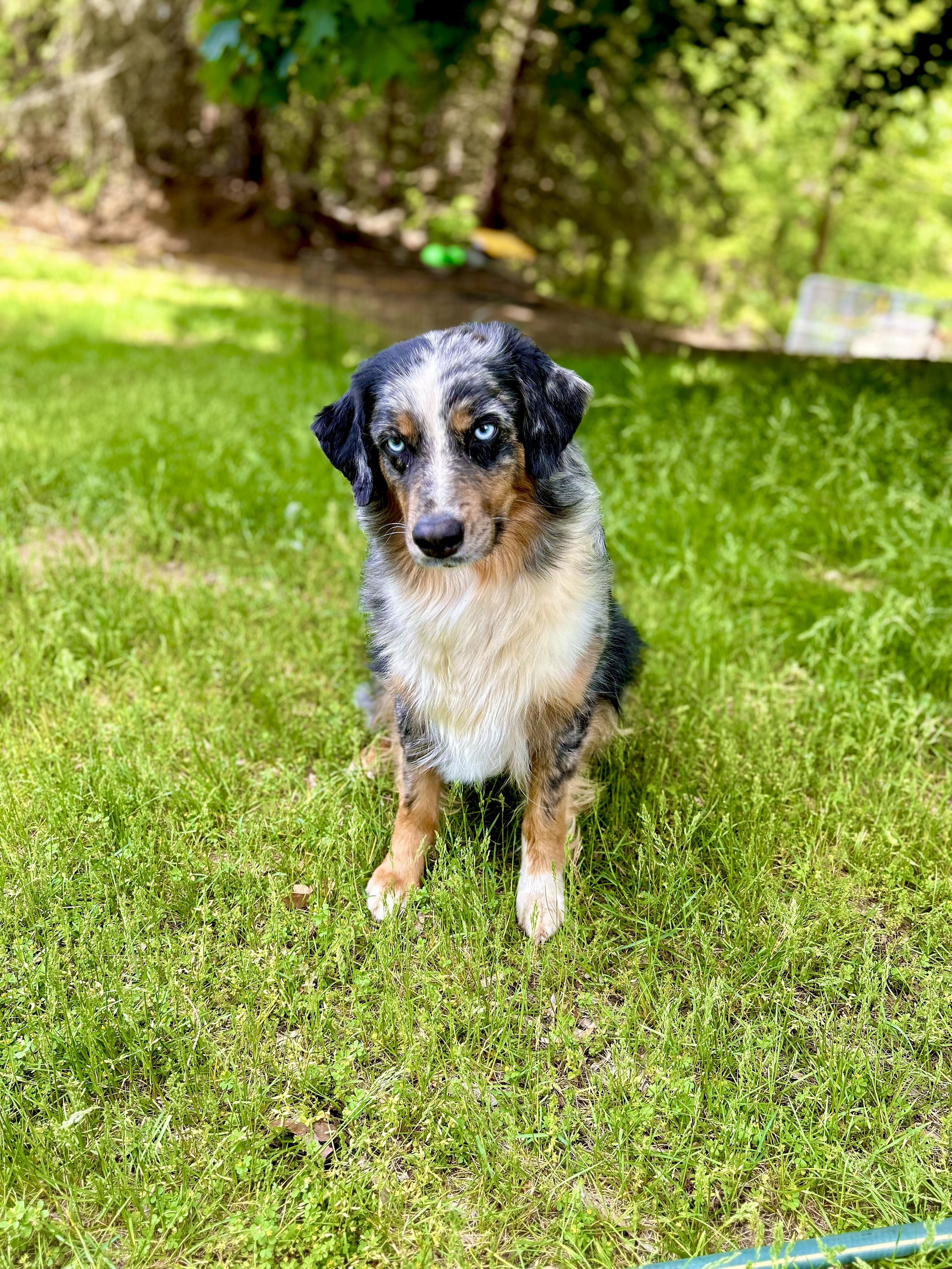 Timber is a male Australian Shepherd. Carefully selected as a great representative of his breed, Sarah decided to make him part of their program. Sarah has passed Good Dog’s screening process, which involved a review of their breeding practices, environment, and the mental and physical health of their dogs.