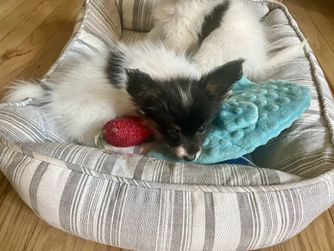 Umberto is a male Papillon. Carefully selected as a great representative of his breed, Cassandra decided to make him part of their program. Cassandra has passed Good Dog’s screening process, which involved a review of their breeding practices, environment, and the mental and physical health of their dogs.