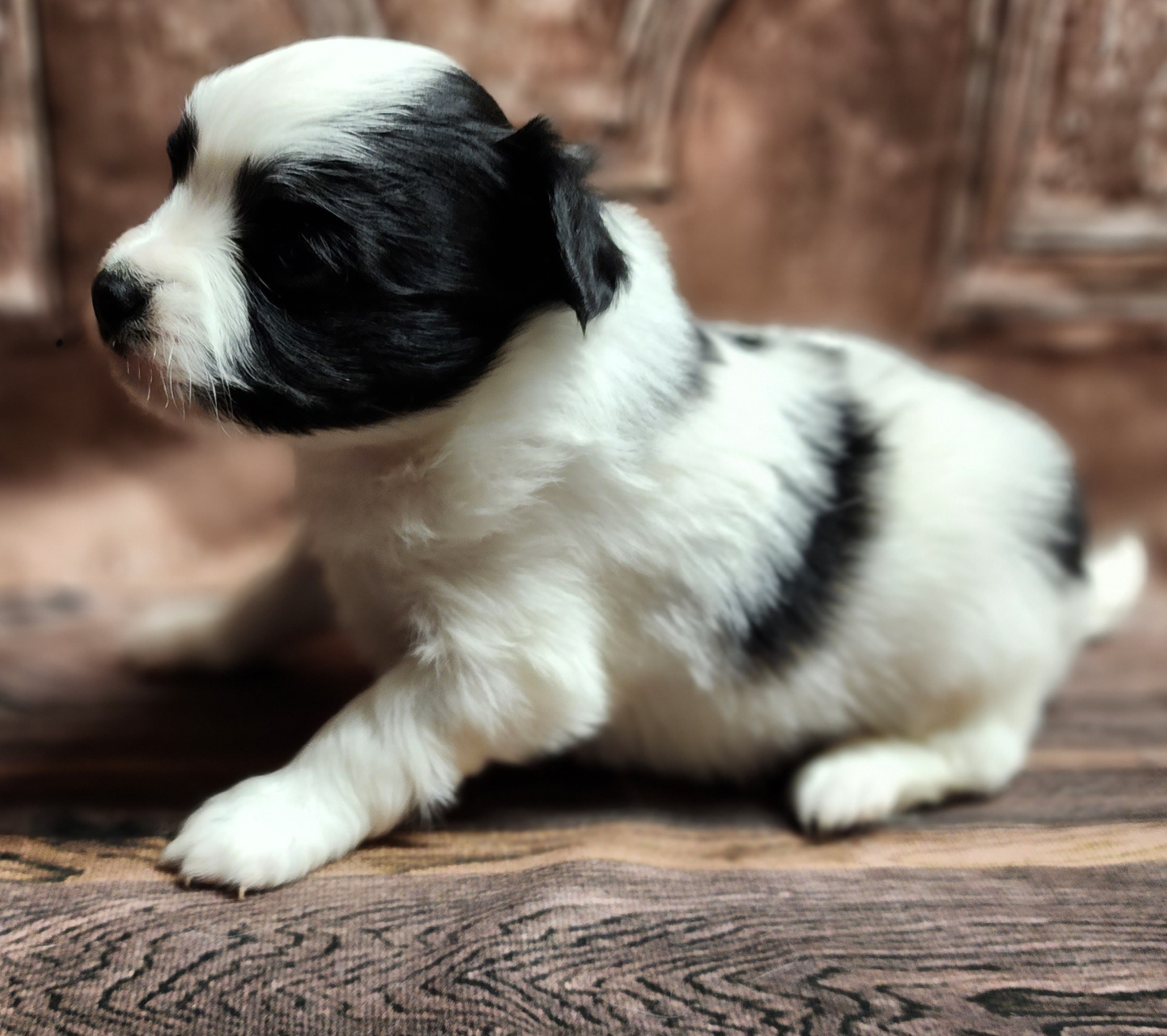 Companion Cross puppies have long coats. Coat types may vary depending on the parent dogs.